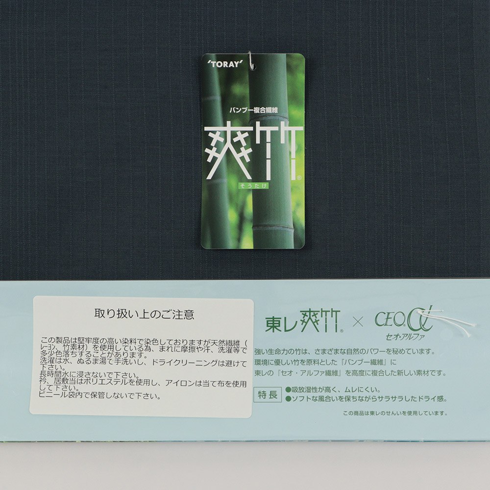 バンブー繊維に特品ポリエステル繊維を複合した「爽竹」と、クールドライな新素材「セオα」を使用した、盛夏に快適な長襦袢。