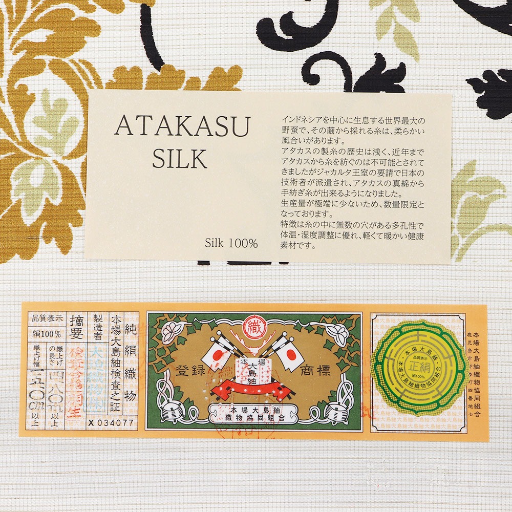 アタカス地と大島紬の妙、そしてモダンデザインを一本で堪能していただけます。ぜひ一度お手元でご覧くださいませ。