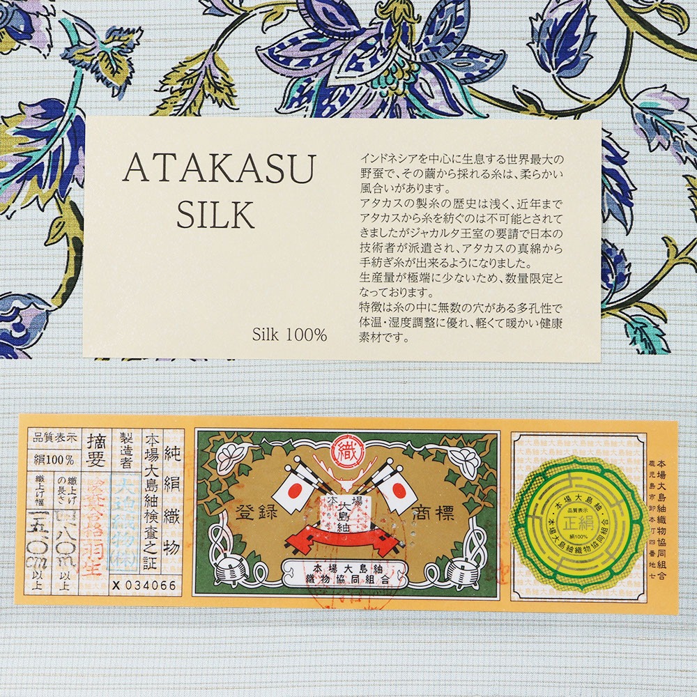 アタカス地と大島紬の妙、そしてモダンデザインを一本で堪能していただけます。ぜひ一度お手元でご覧くださいませ。