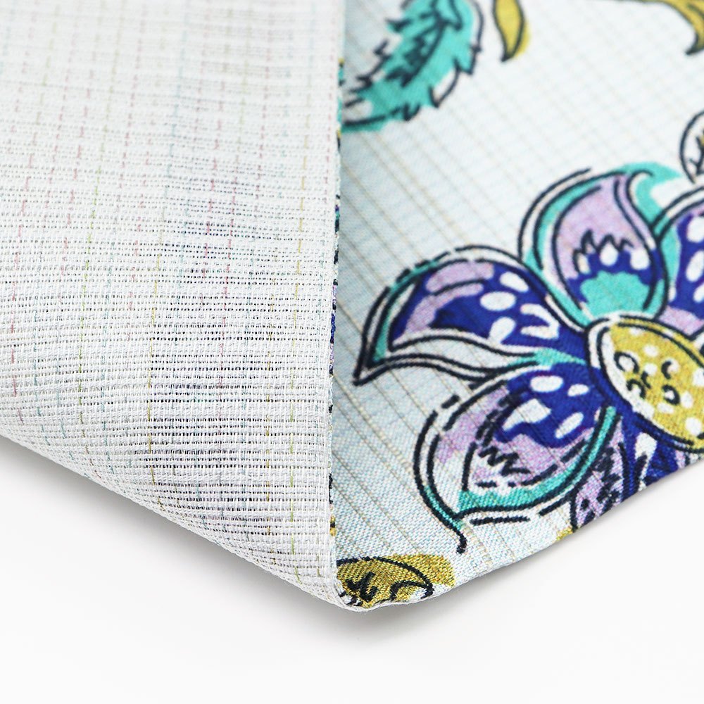 インクジェットで表現された柄行きは、絣や染めとはひと味違う繊細さ。手描きのような模様から型絵のような質感まで、再現性の高いモダンデザインが帯元を彩ります。盛夏以外の3シーズンに着用していただけるので、着物や小物を替えて様々なコーディネートをお楽しみください。