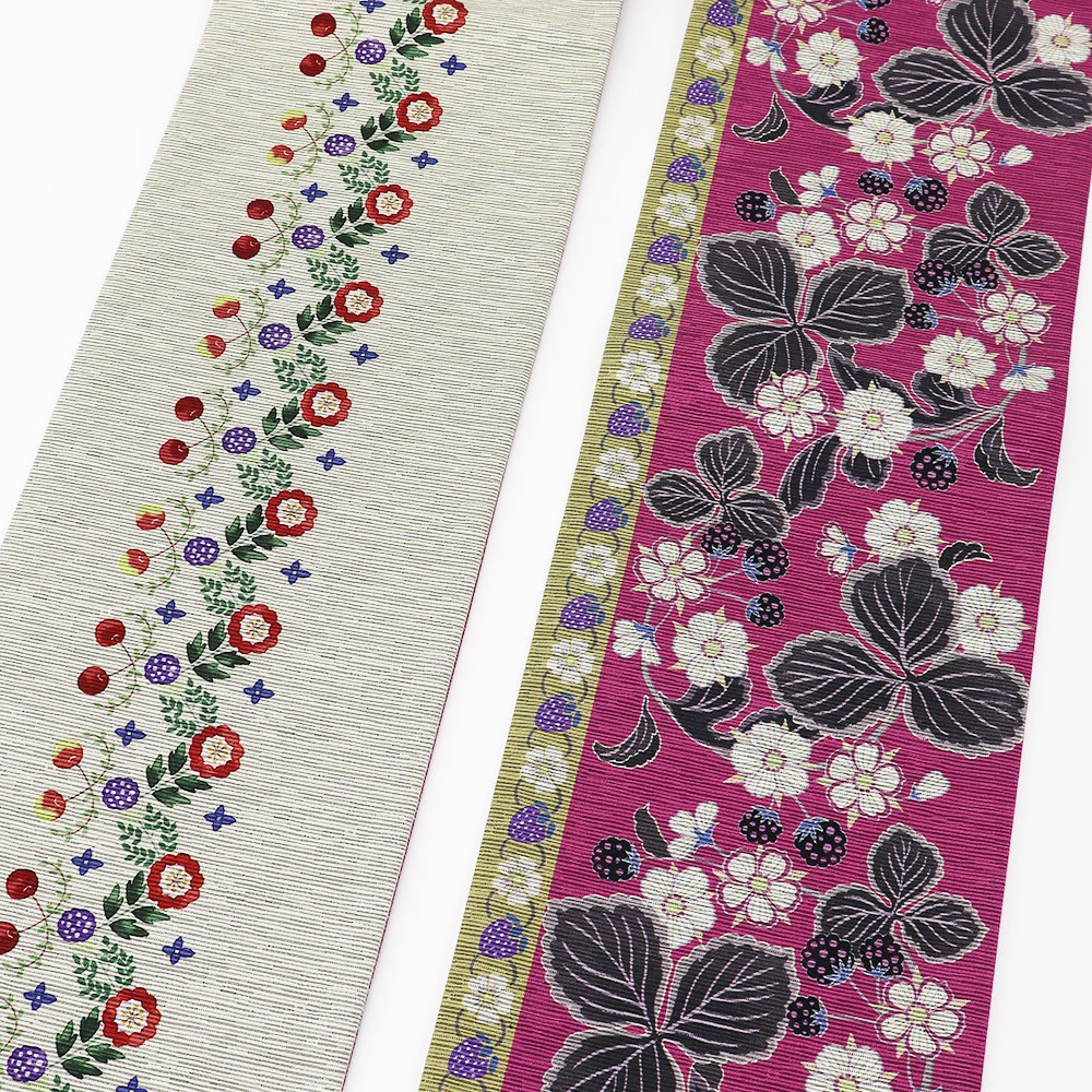仕立て上がりリバーシブル半巾帯(苺のパンチュール)【召しませ花】