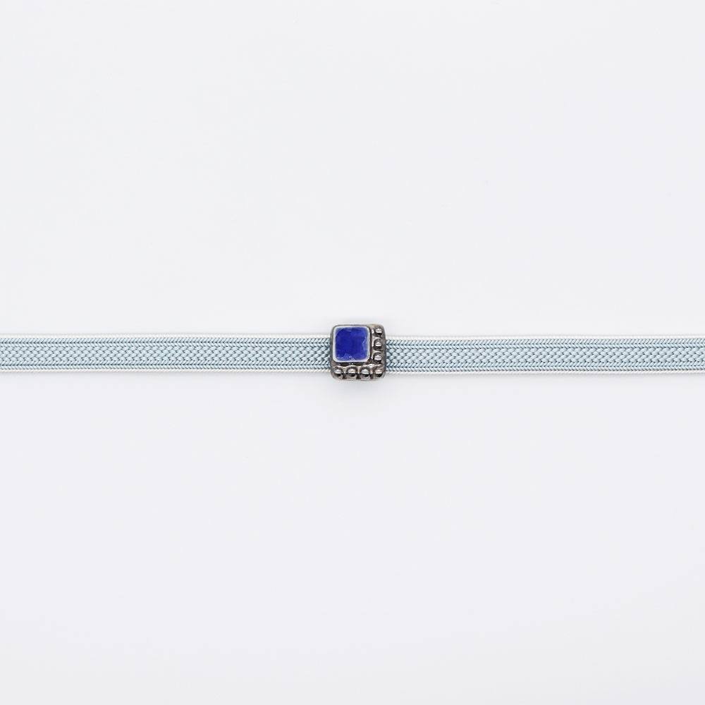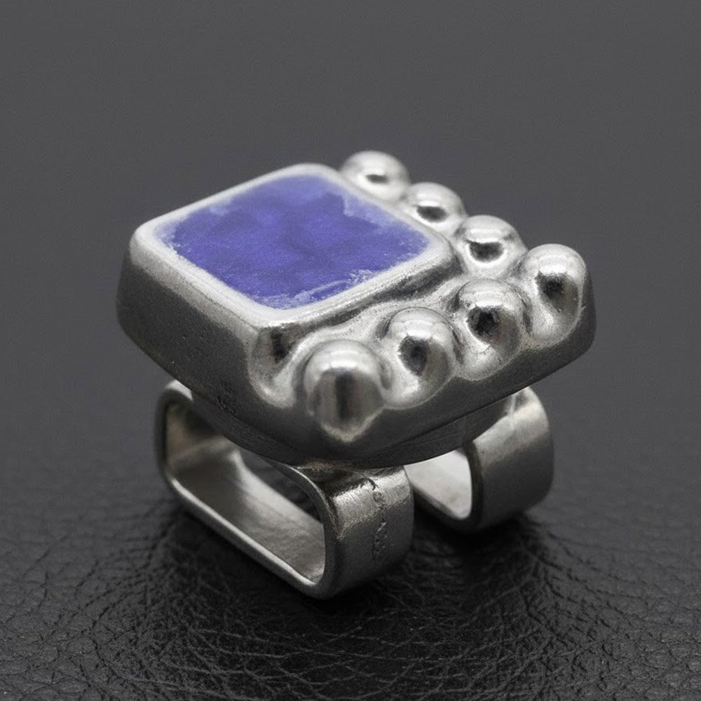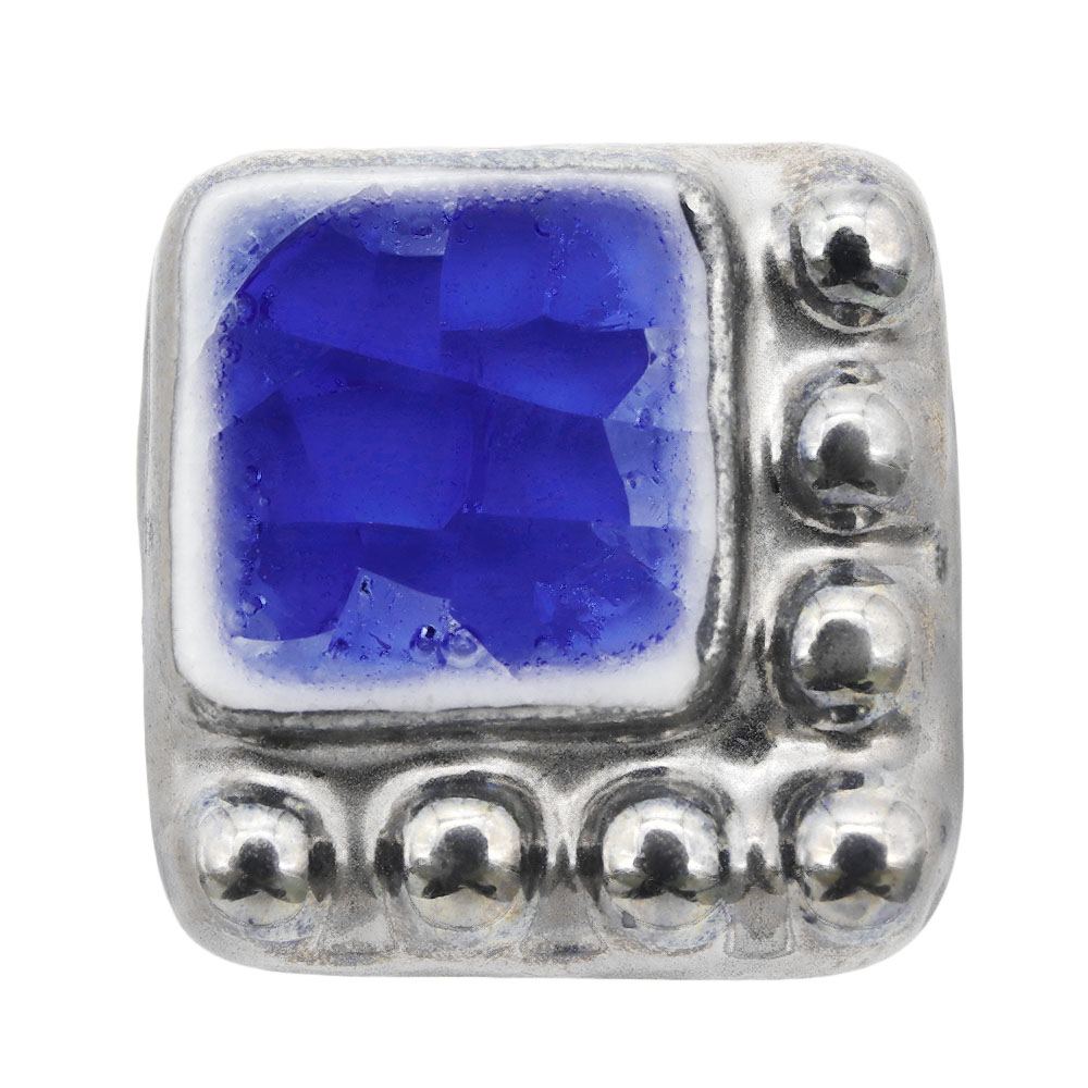 ミニマムなサイズ感とシルバーの質感がレトロ感あふれる一品です。透明感のあるコバルトは、陶片を敷き詰めた細かなディティール。異なる素材をひとつにまとめ、指先サイズに落とし込んだハイセンスなデザインになっています。