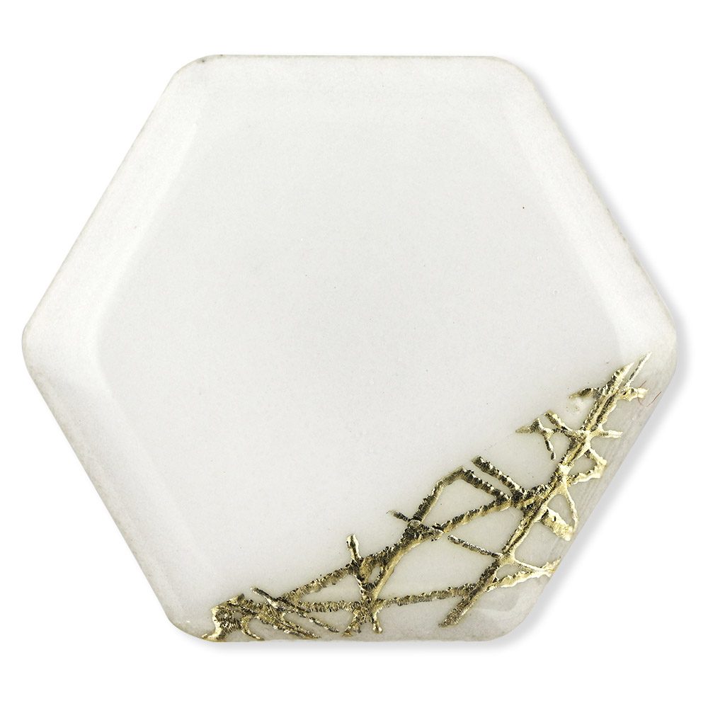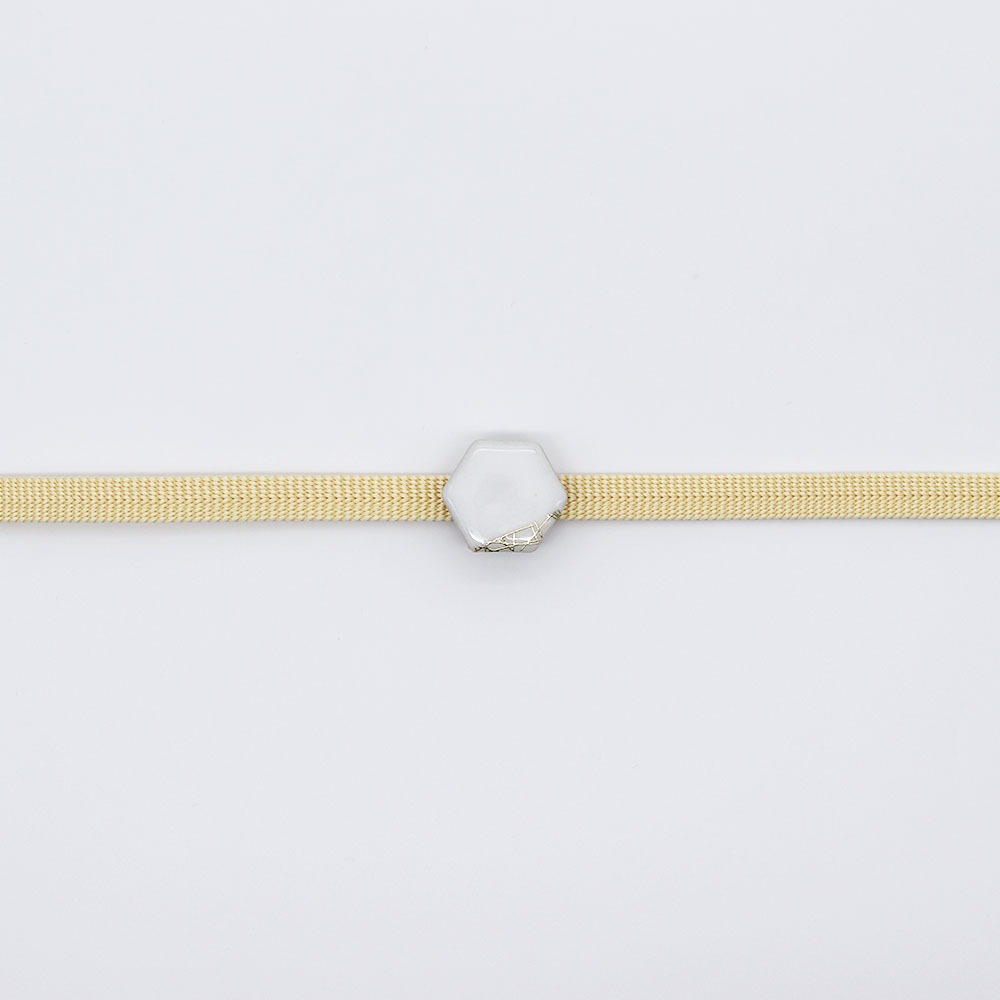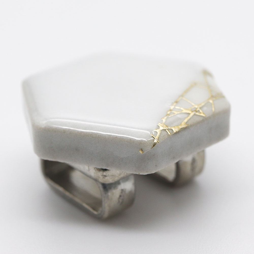 六角形にカットした白の美濃焼タイルにゴールドを添えたデザインで、普段使いはもちろん、パーティーにもオススメ。伝統工芸品の美濃焼がもつ温かみはそのままに、現代のファッションにもマッチするクラシカルな仕上がりは、着物姿にも溶け込むように華を添えてくれるでしょう。