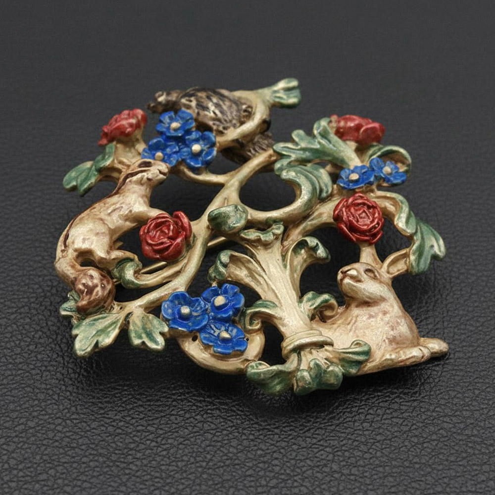 伸びやかに絡み合う蔦花から動物が顔を覗かせる、愛らしいひと品です。