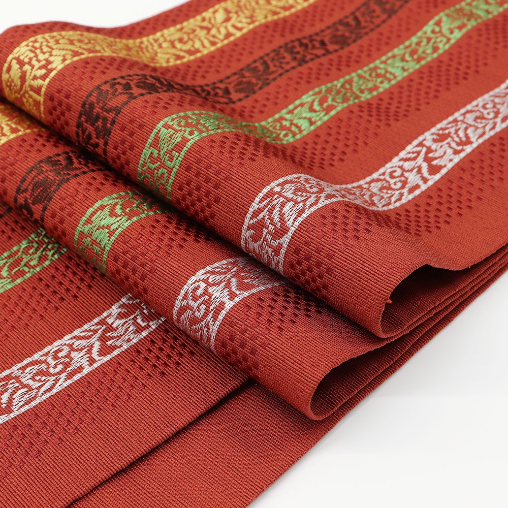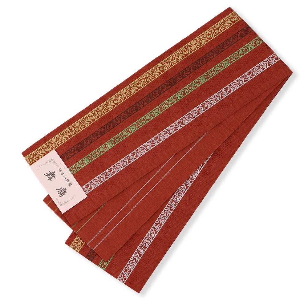 博多織の金証紙付き小袋帯『舞扇』。密度が高く軽やかで締めやすい博多織の特徴をそのまま生かした、気取らずにサラッと締められるお手軽帯です。