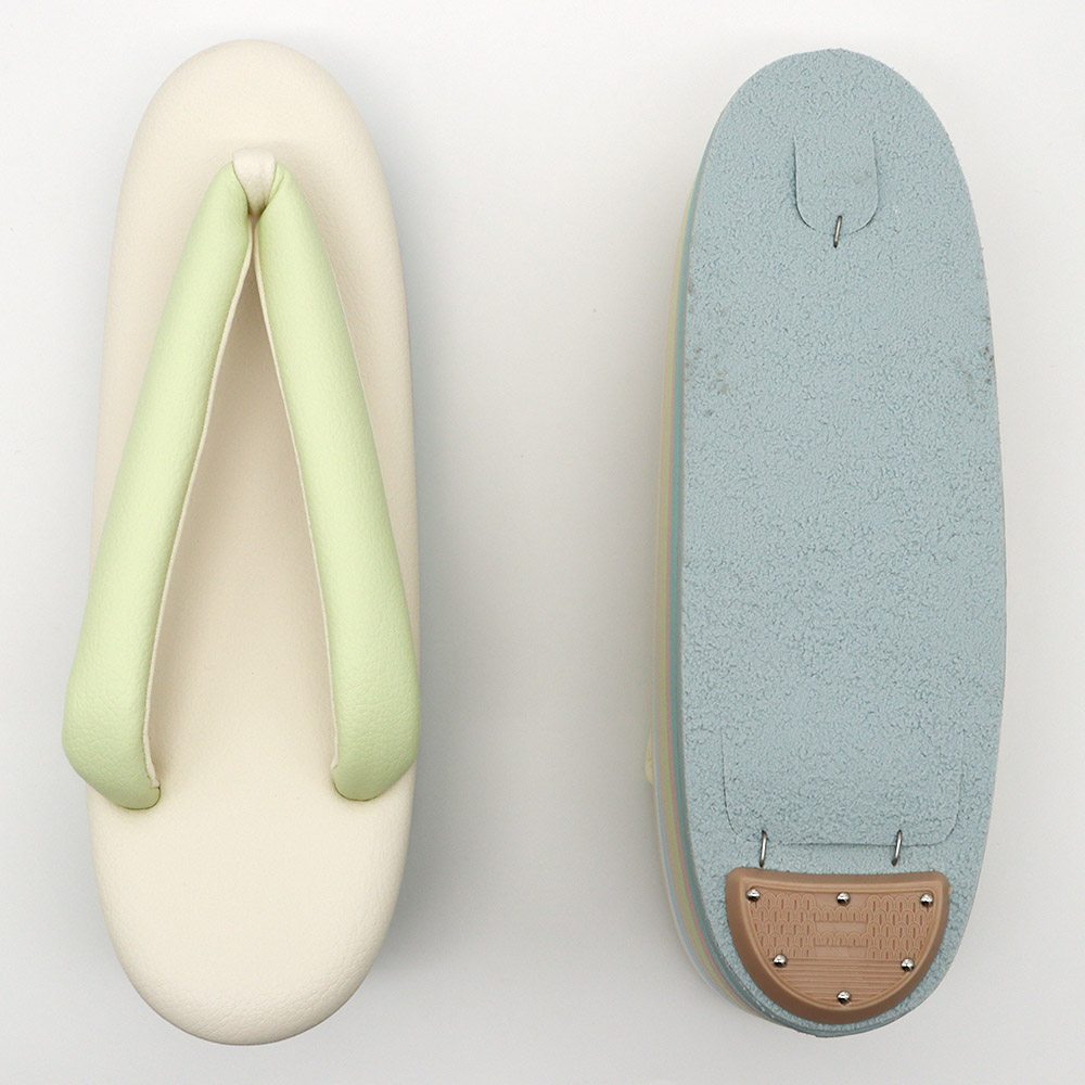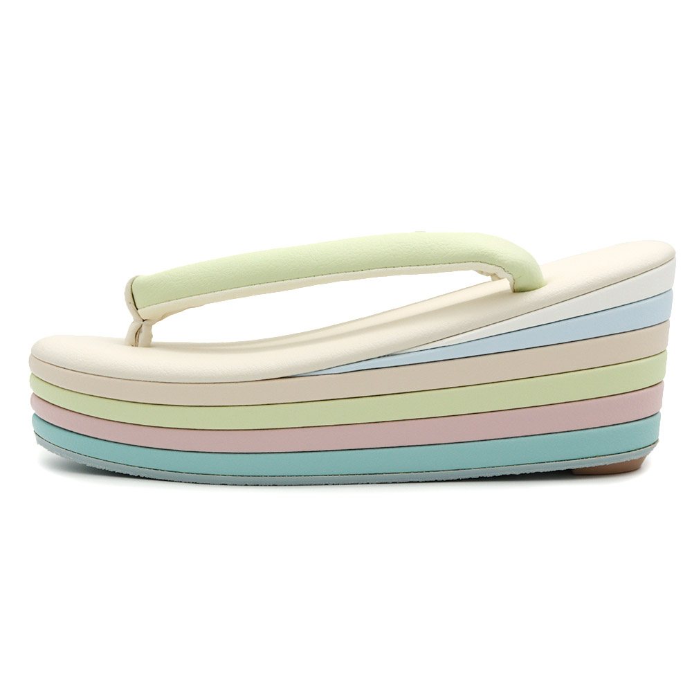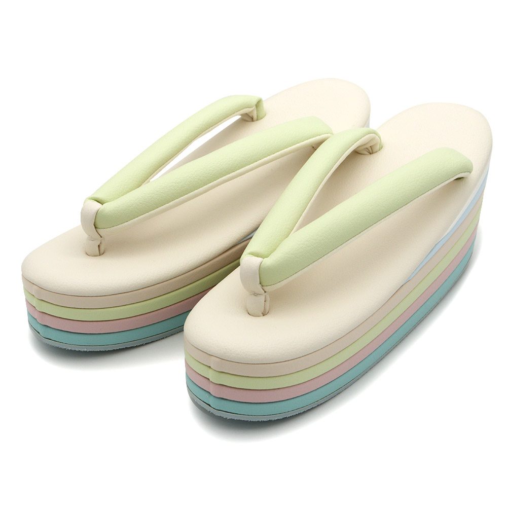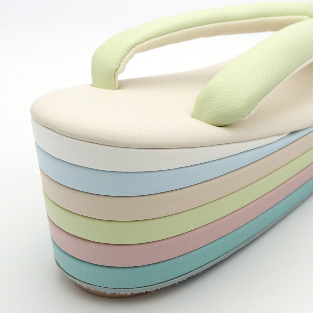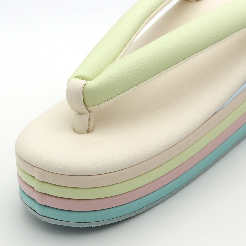 ミルフィーユのような色とりどりの草履芯を重ねた、厚底草履。