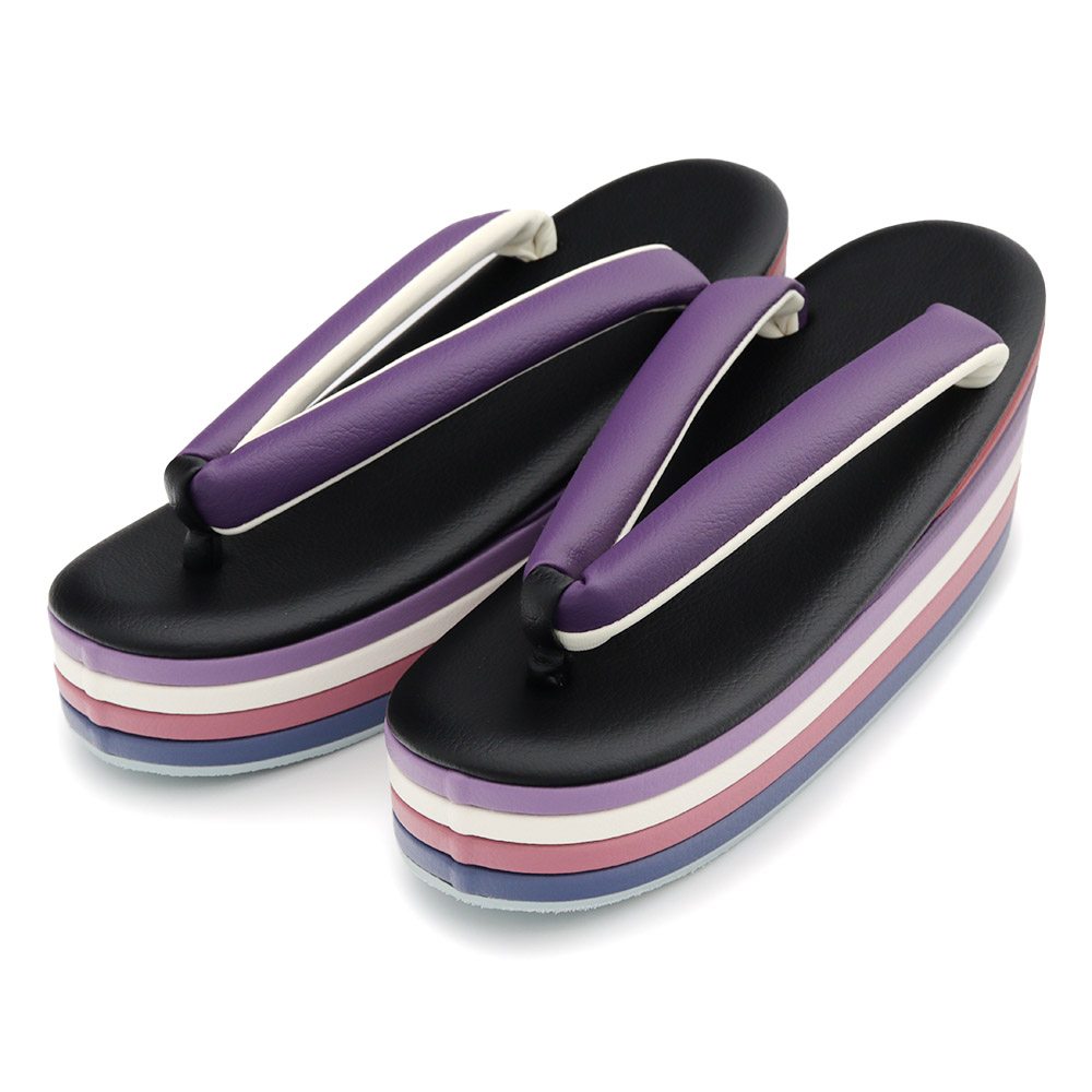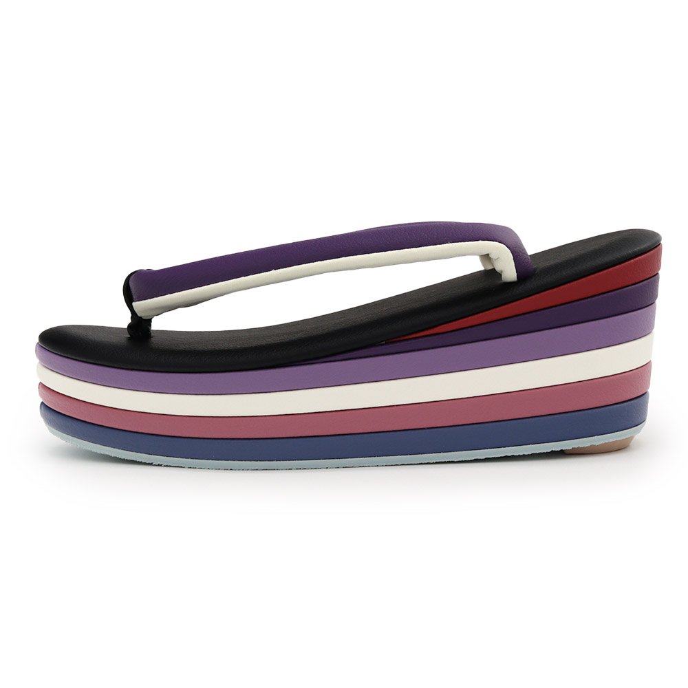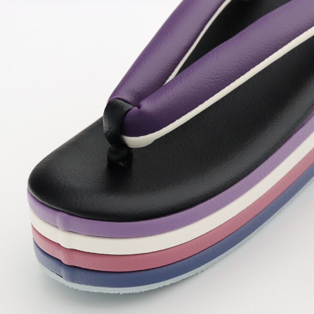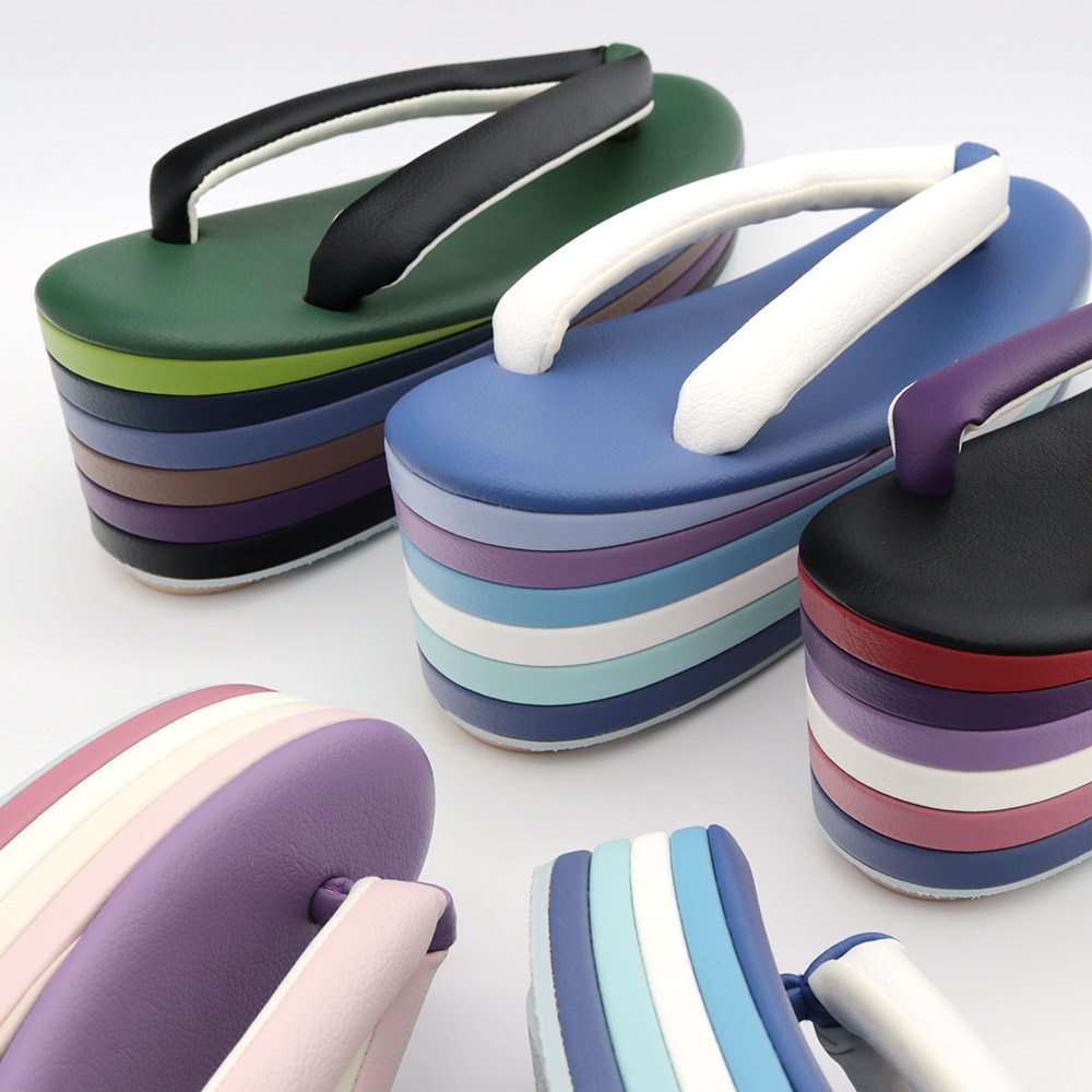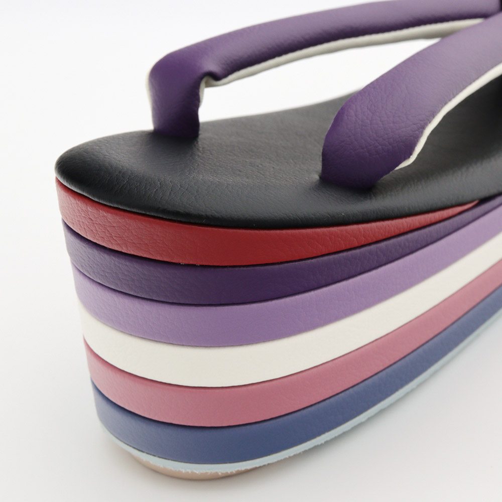 ミルフィーユのような色とりどりの草履芯を重ねた、厚底草履。