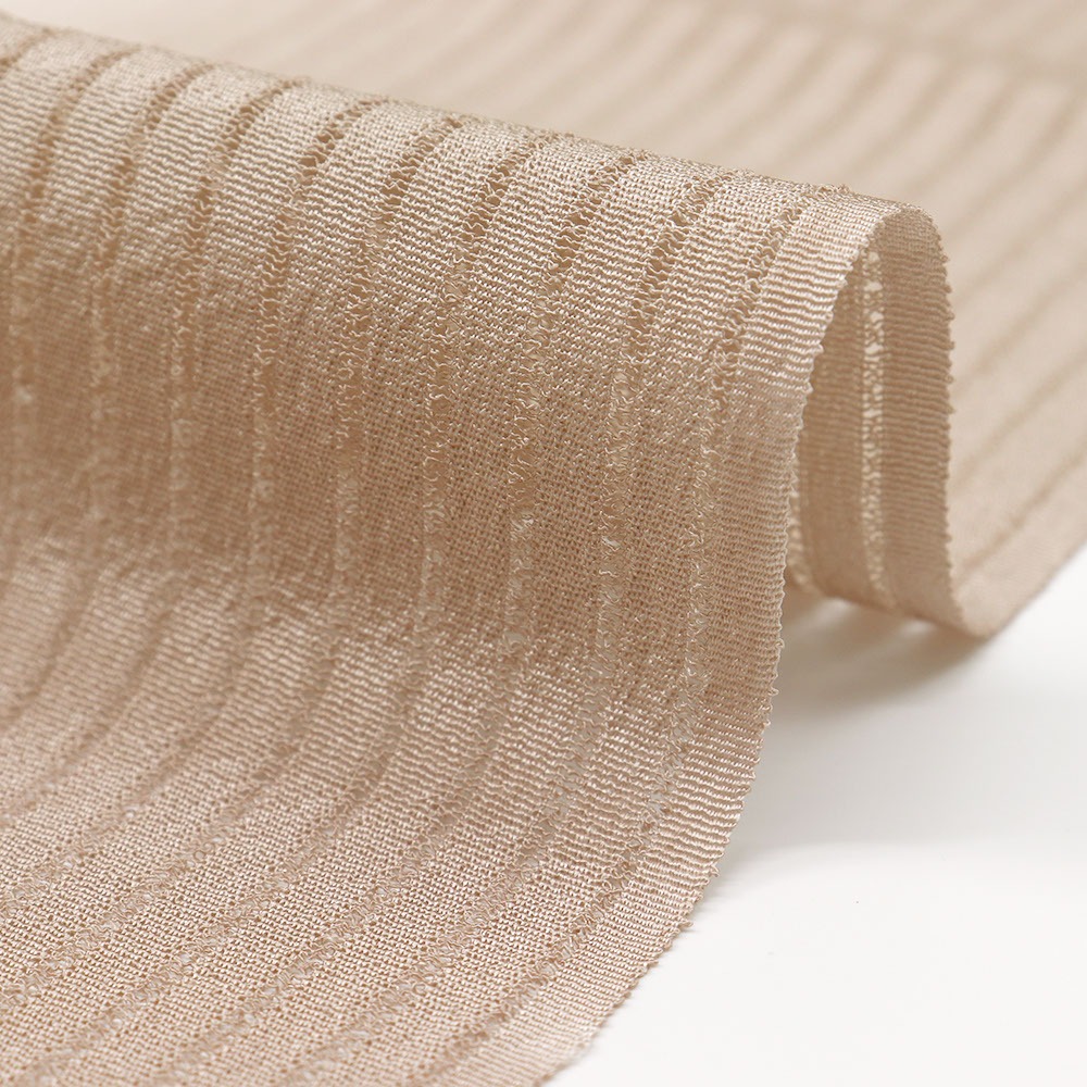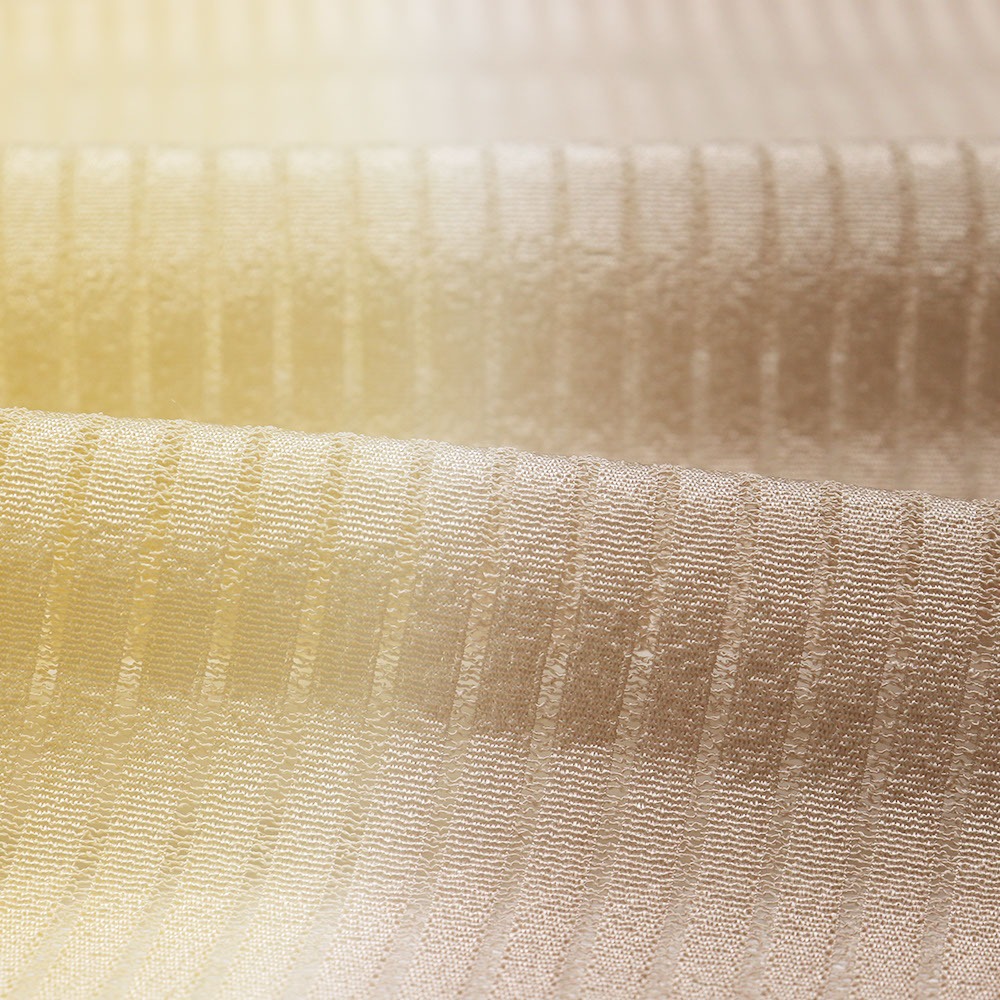 薄茶と橙の縦ぼかしを染めた爽やかな夏の一枚。正絹の絽生地は、しっかりとした風合いはそのままにやわらかな手触りと通気性の良さが魅力的。ふわっとしたぼかし模様と涼し気な絽生地が、暑い日のカジュアルファッションを彩ってくれます。
