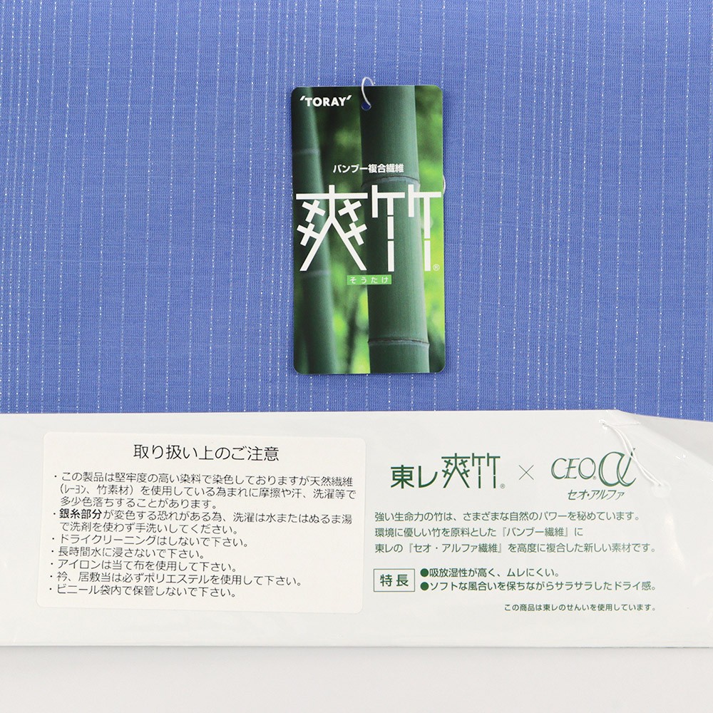 バンブー繊維に特品ポリエステル繊維を複合した「爽竹」と、クールドライな「セオα」を使用した盛夏に快適な長襦袢。