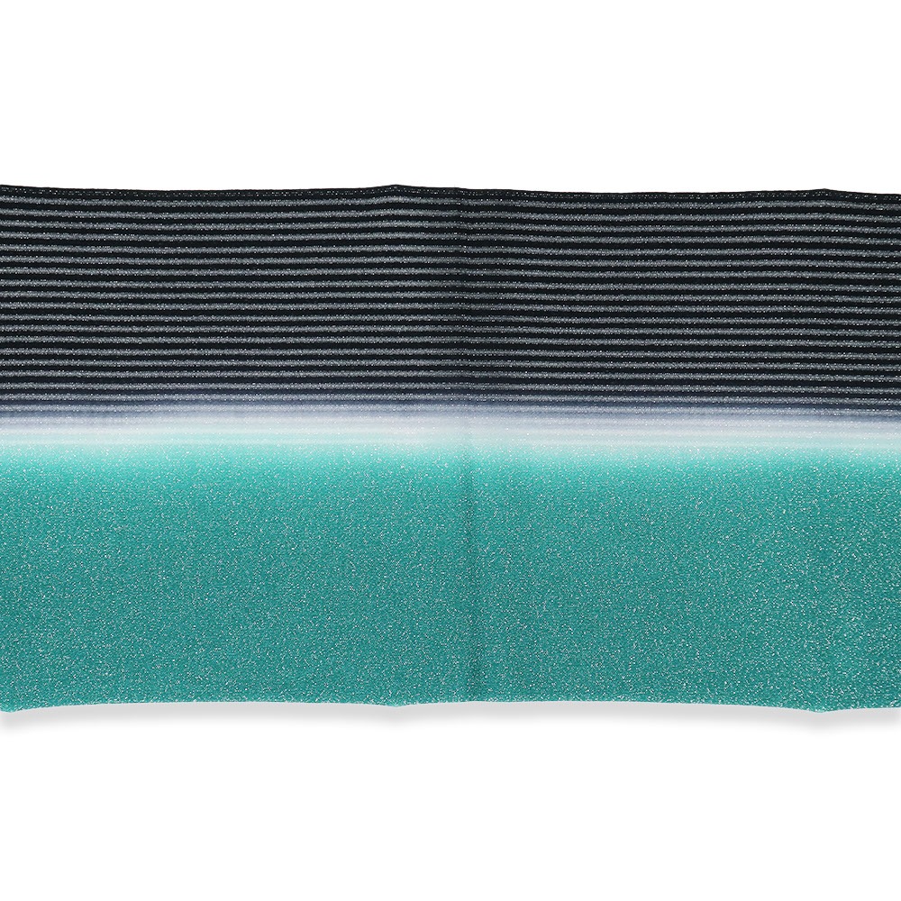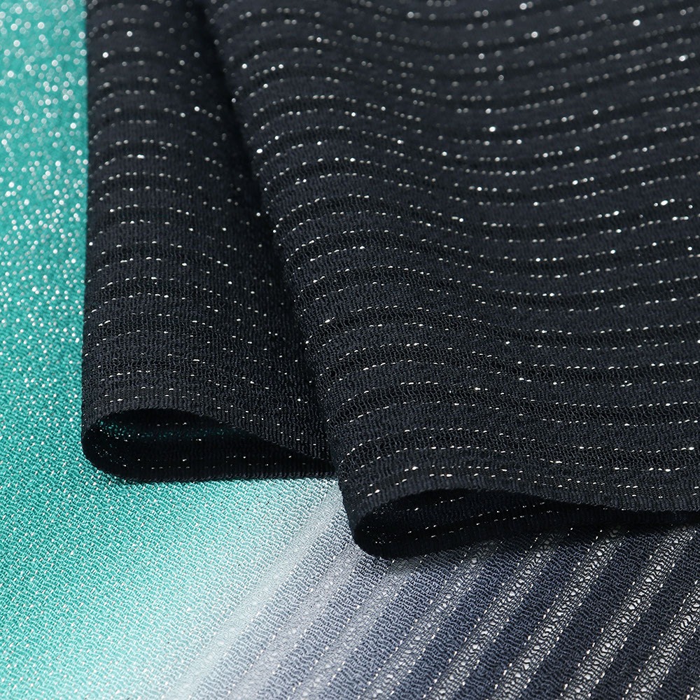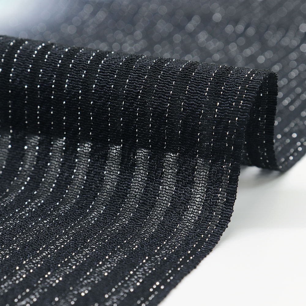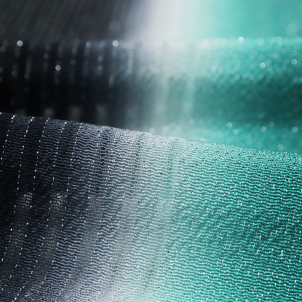 片側は細かいシボがふっくらとした質感を生み出す縮緬地、もう片側はほどよい透け感が涼しげな印象を与えてくれる縦絽生地。縦にそれぞれ異なる織を配し、季節やコーディネートによって幅広く使える一枚になっています。箔糸はどちらにも織り込まれ、華やかさはそのままに。黒×青緑のモダンなバイカラーが、カジュアルコーデのアクセントに活躍してくれそうです。