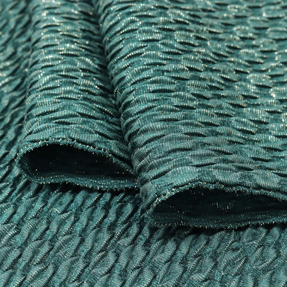 深緑色とやわらかなふくれ織りがシックな雰囲気の帯揚。