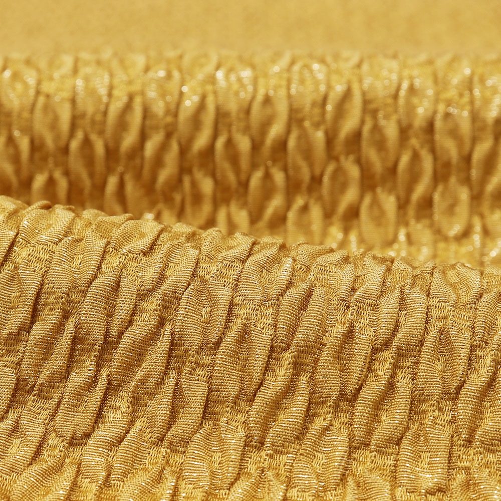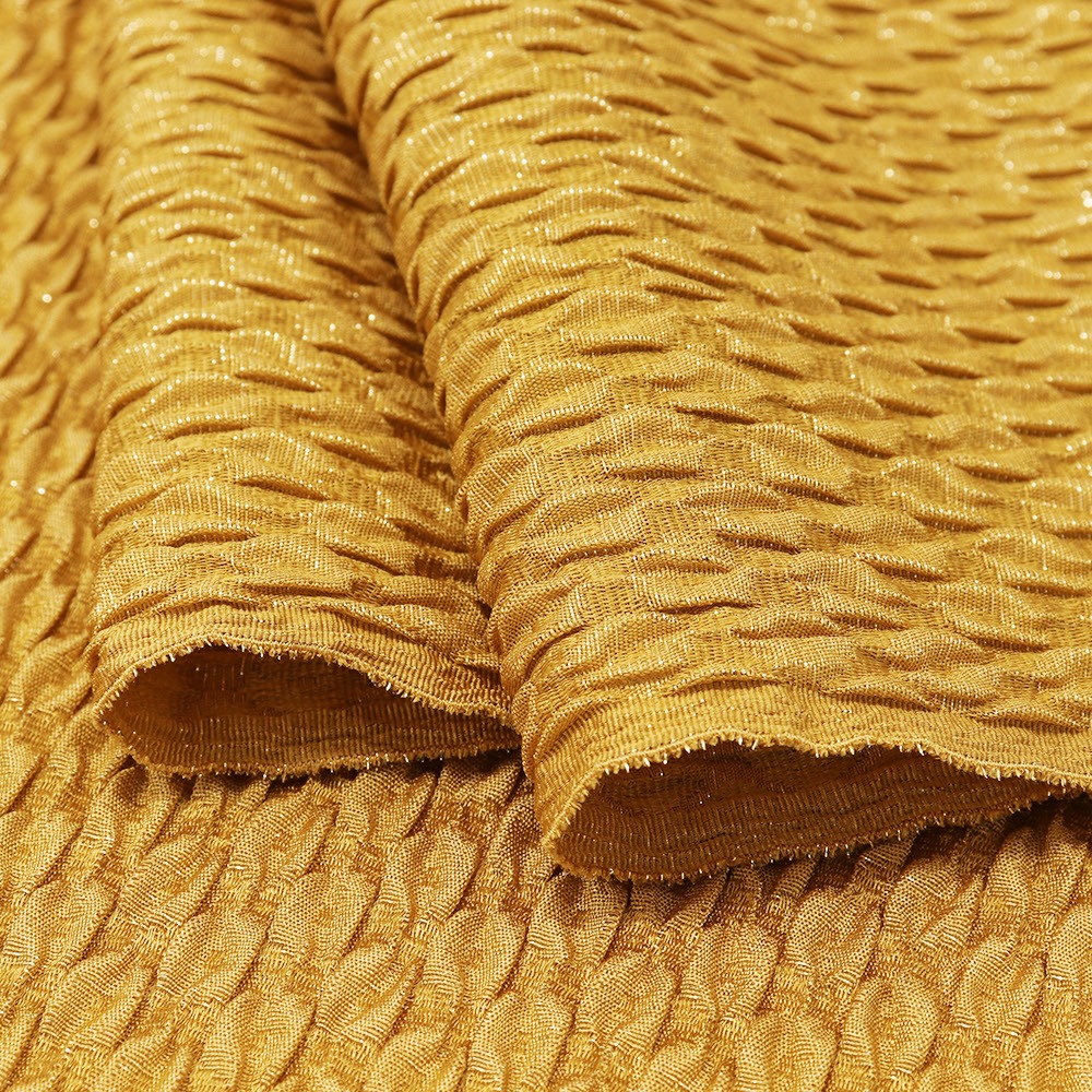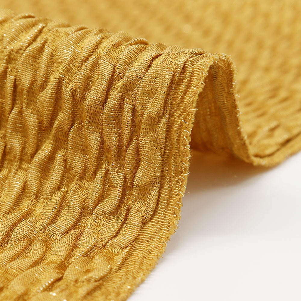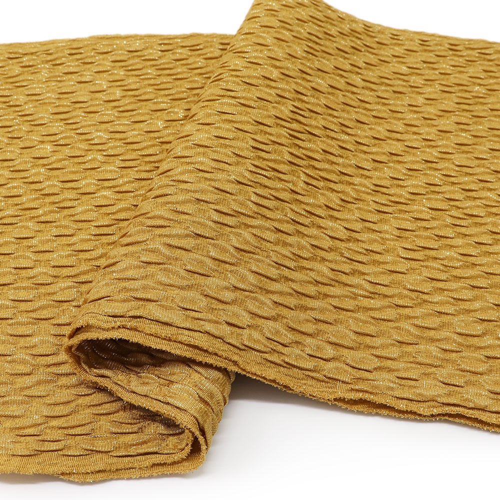 黄金色とやわらかなふくれ織りがシックな雰囲気の帯揚。