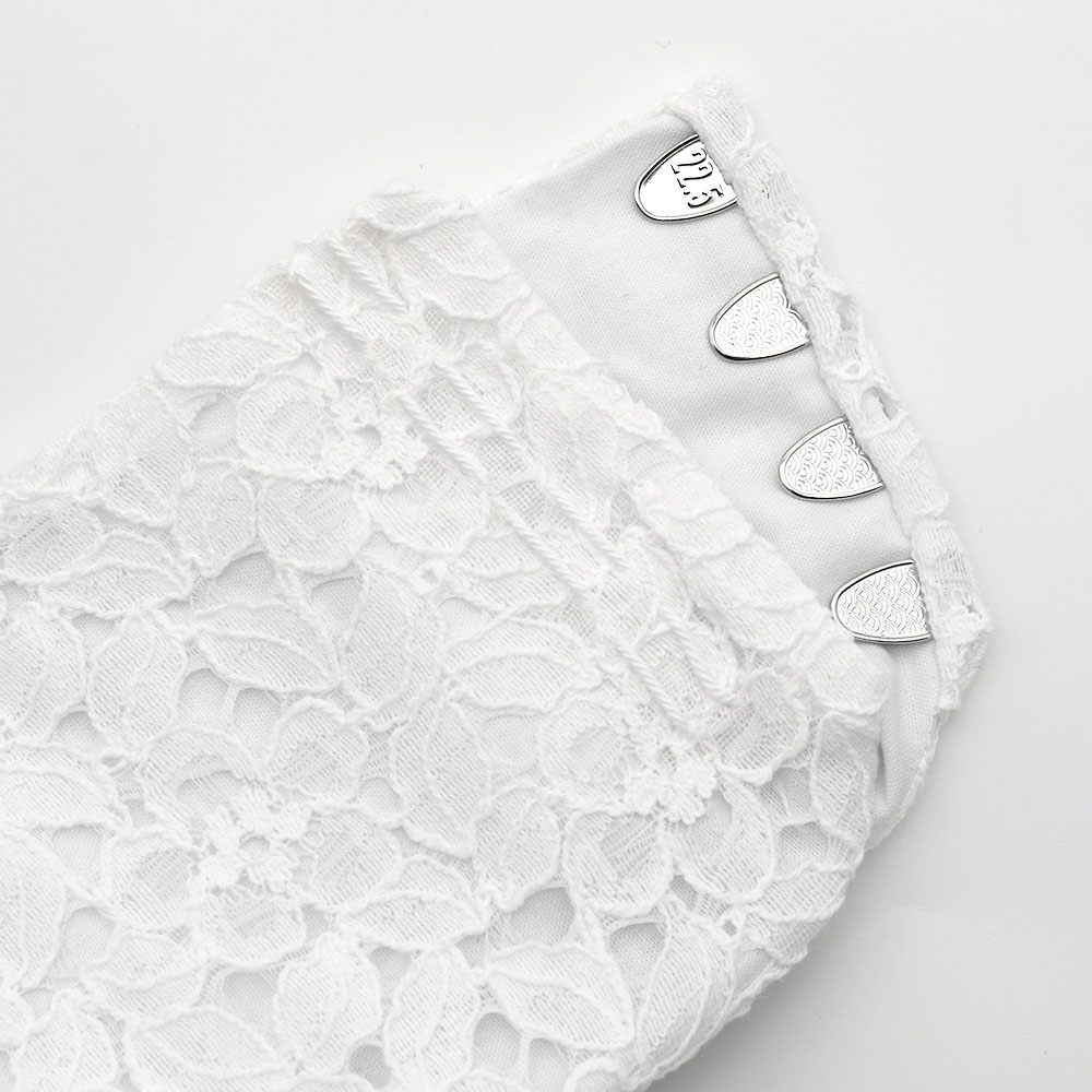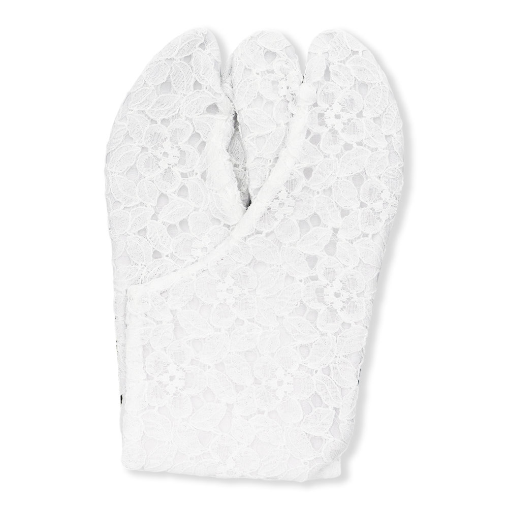 レース生地に白の裏地を着け、レースならではの軽やかさを持ちながら、素肌が透けて見えない安心感を兼ね備えた一足です。コットン100%の裏地はさらりとした風合いなので、夏場のエアコンなどによって素足では冷えてしまう方の冷え性対策にも◎