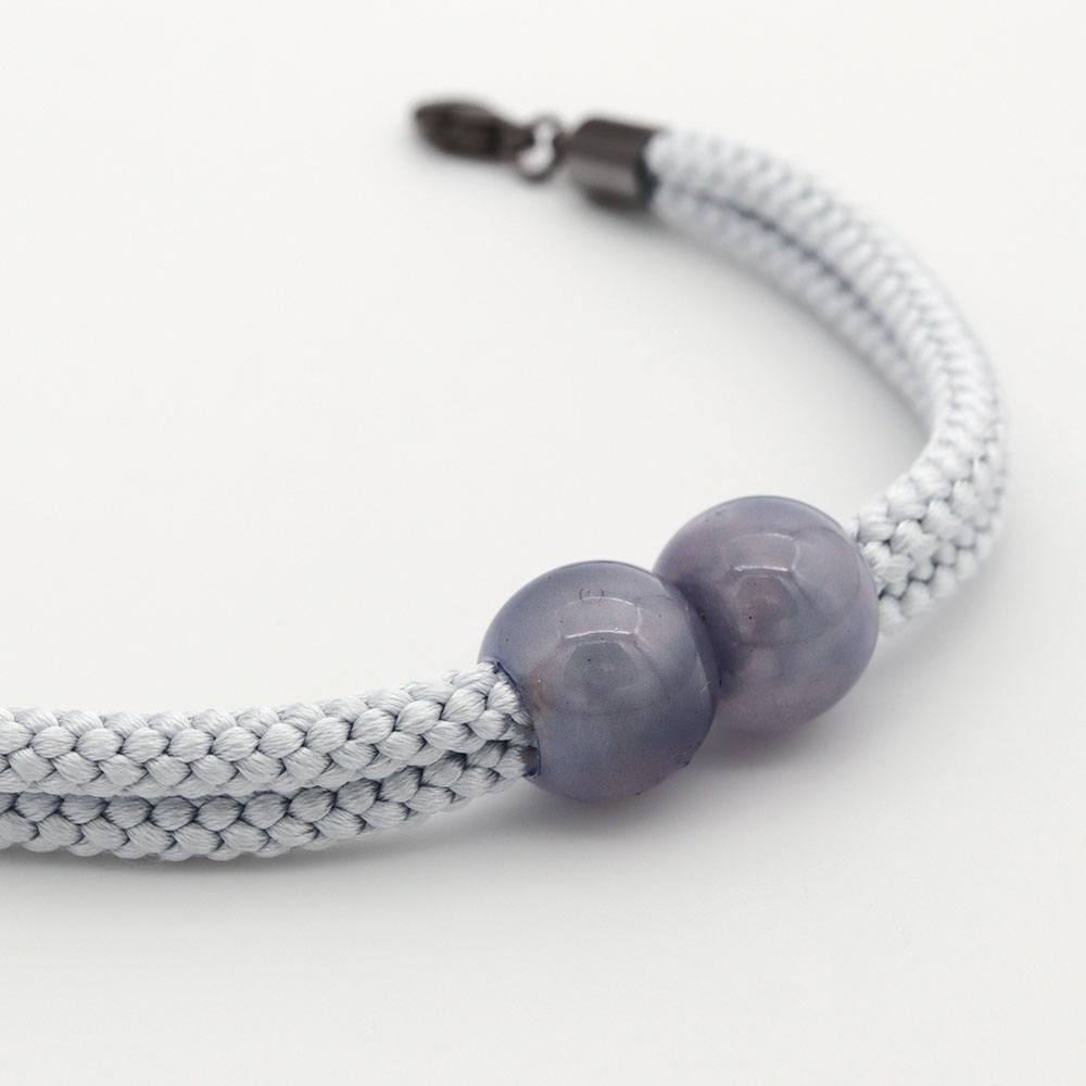 正絹組紐に、つるんと小ぶりなラクト玉を配した上品なデザインです。