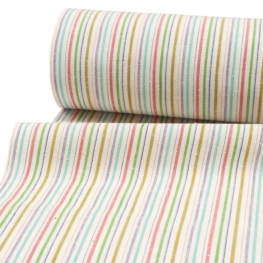 風合いにこだわった糸と、表現性を重視した美しい色合いが、池沼織工房が織る木綿の特徴。ほっこり優しい肌触りと、マルチカラーの可愛らしいハーモニーをお楽しみください。
