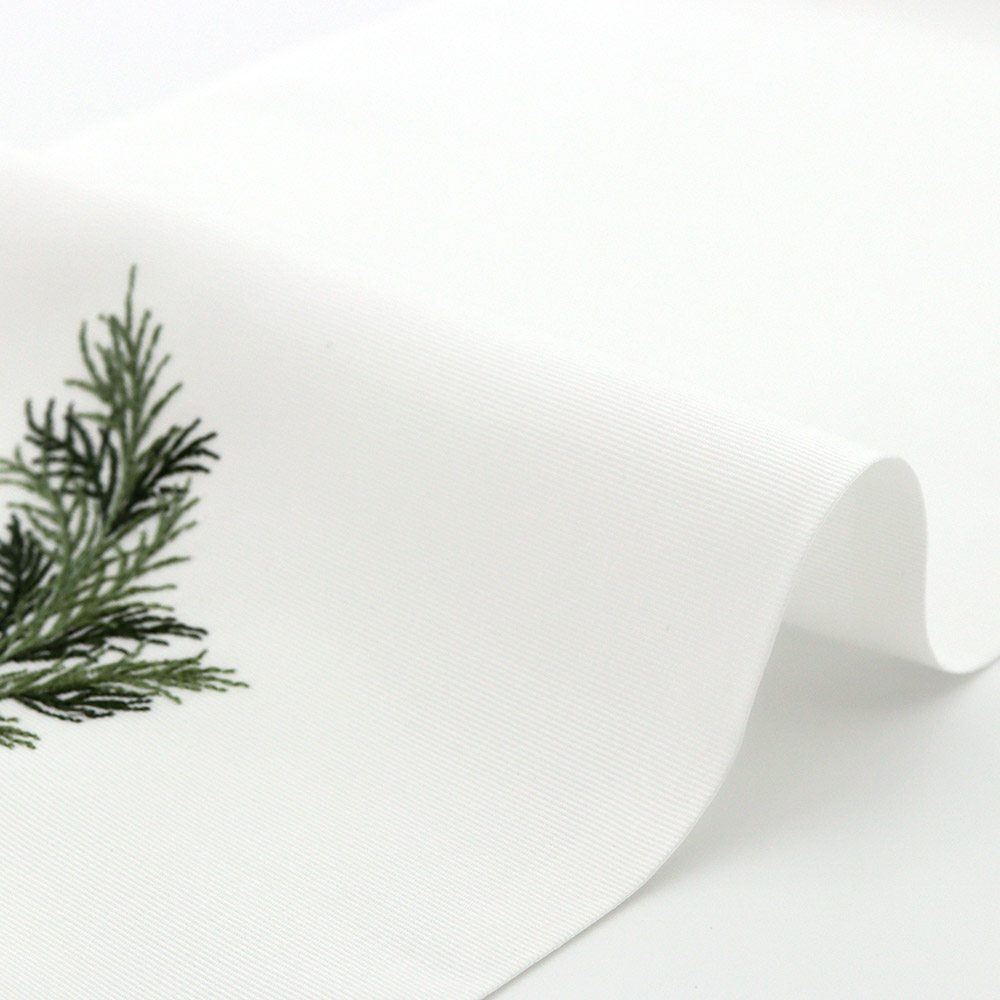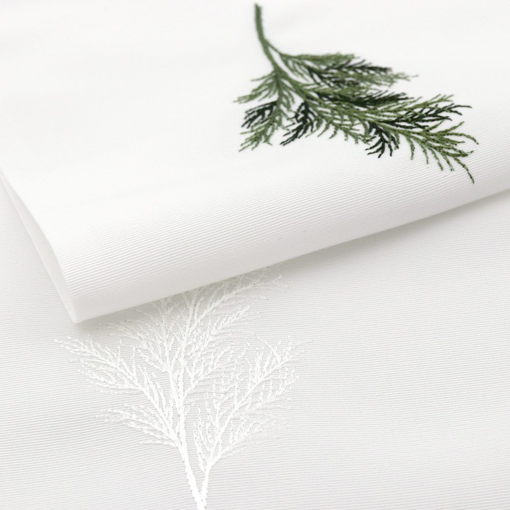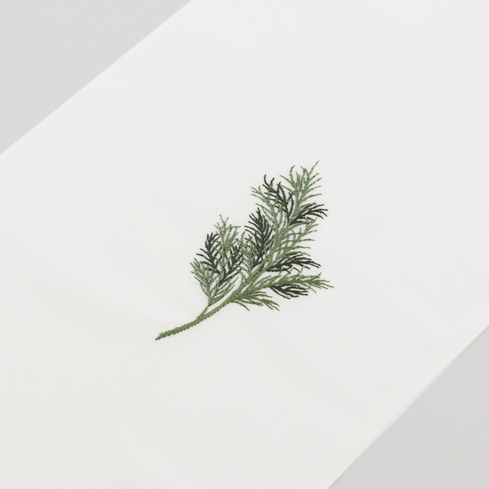やや地厚で塩瀬のような横畝(うね)が清楚な生地に、ディルの刺繍を施した一枚。