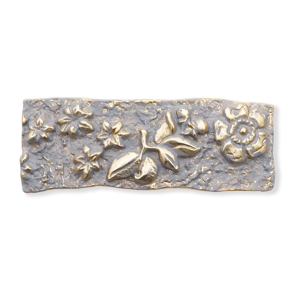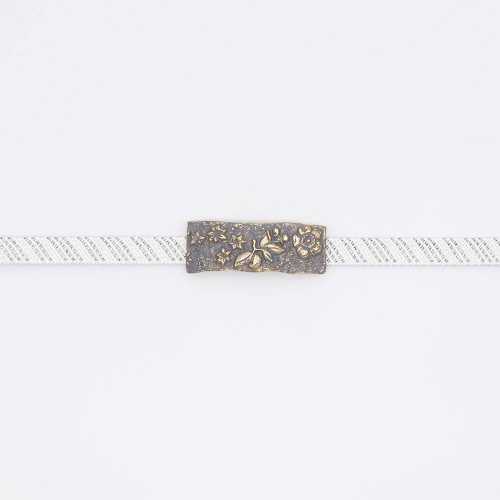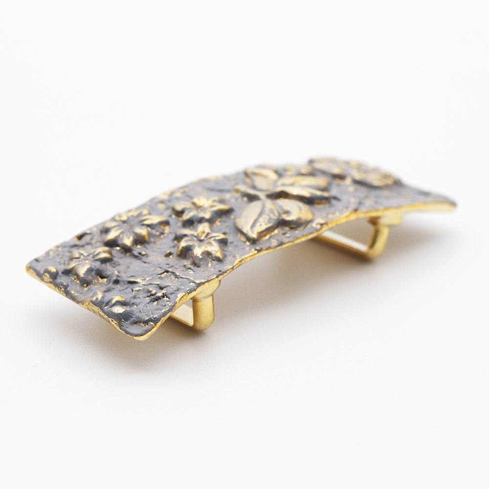 花柄の造形にグレーをカラーリングしたデザインです。複雑なフォルムとマットな質感が、アンティークのような風合いに。帯留自体は柔らかくカーブしているので、腹前に優しくフィットします。
