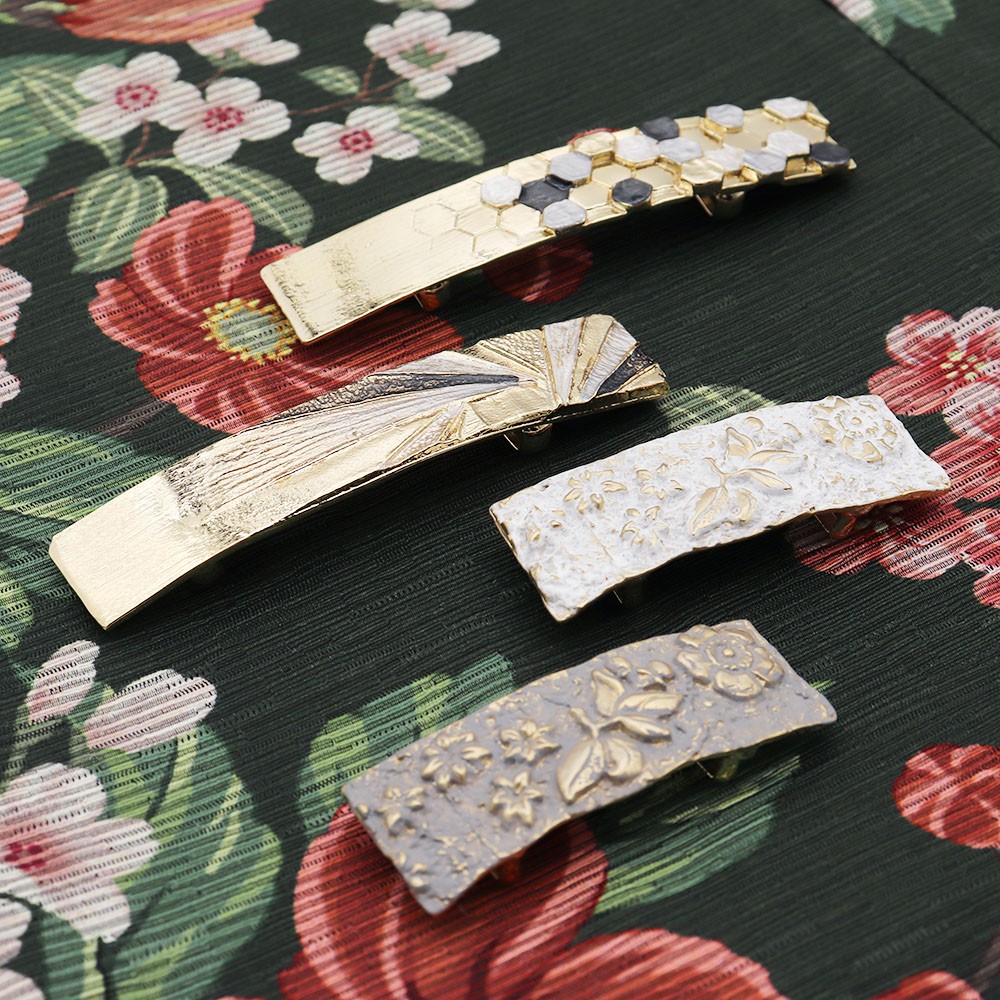 ゴールドの真鍮プレートを使用したスクエア型の帯留シリーズです。