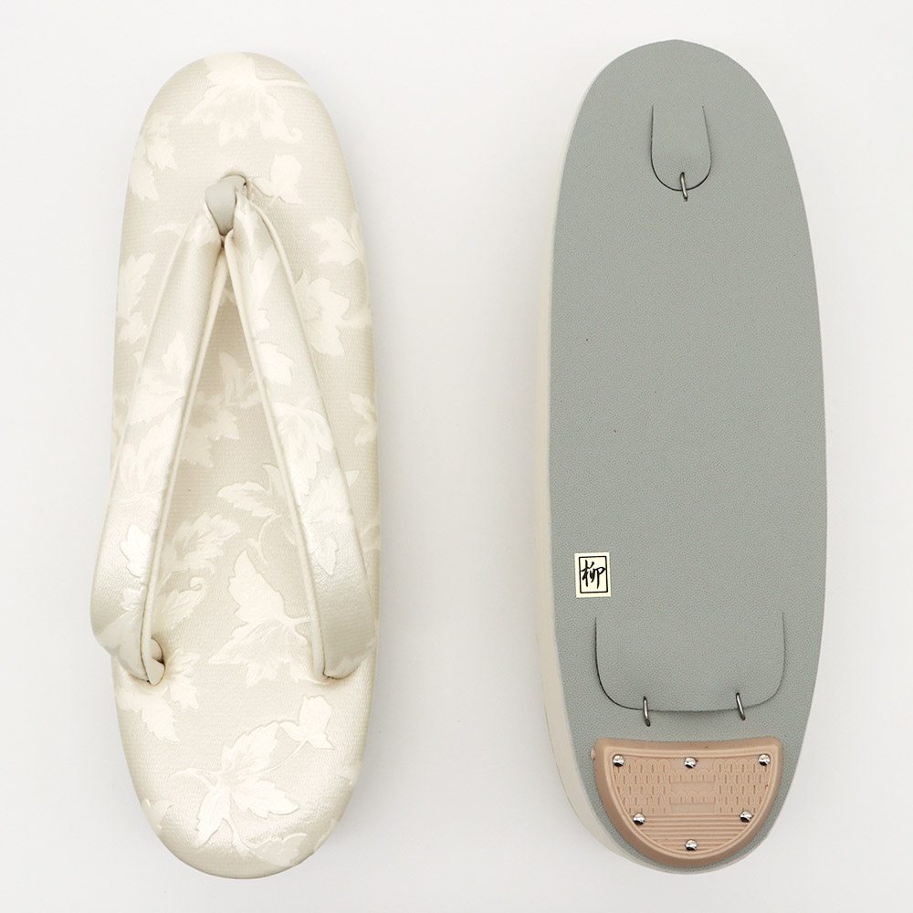 本体、鼻緒裏、芯全てを同色にすることで、柄入りながら上品な佇まいに。