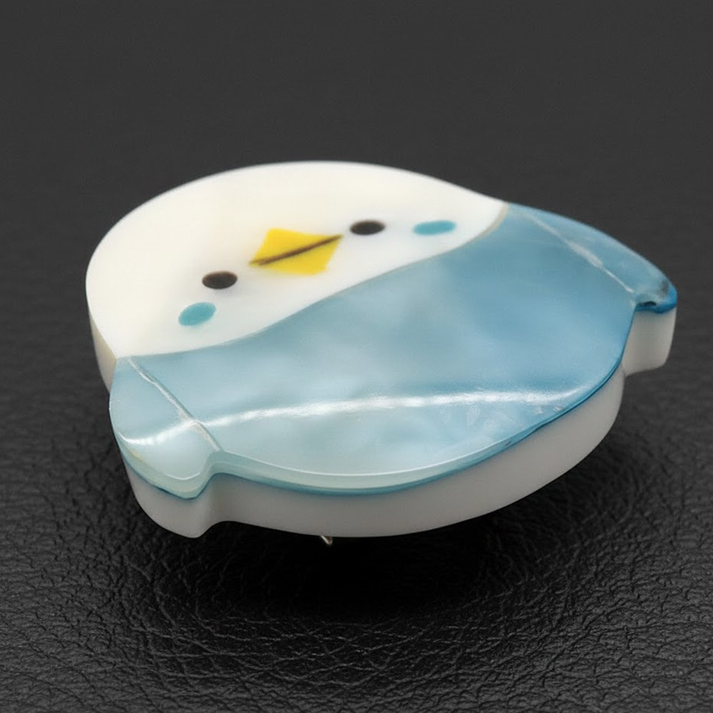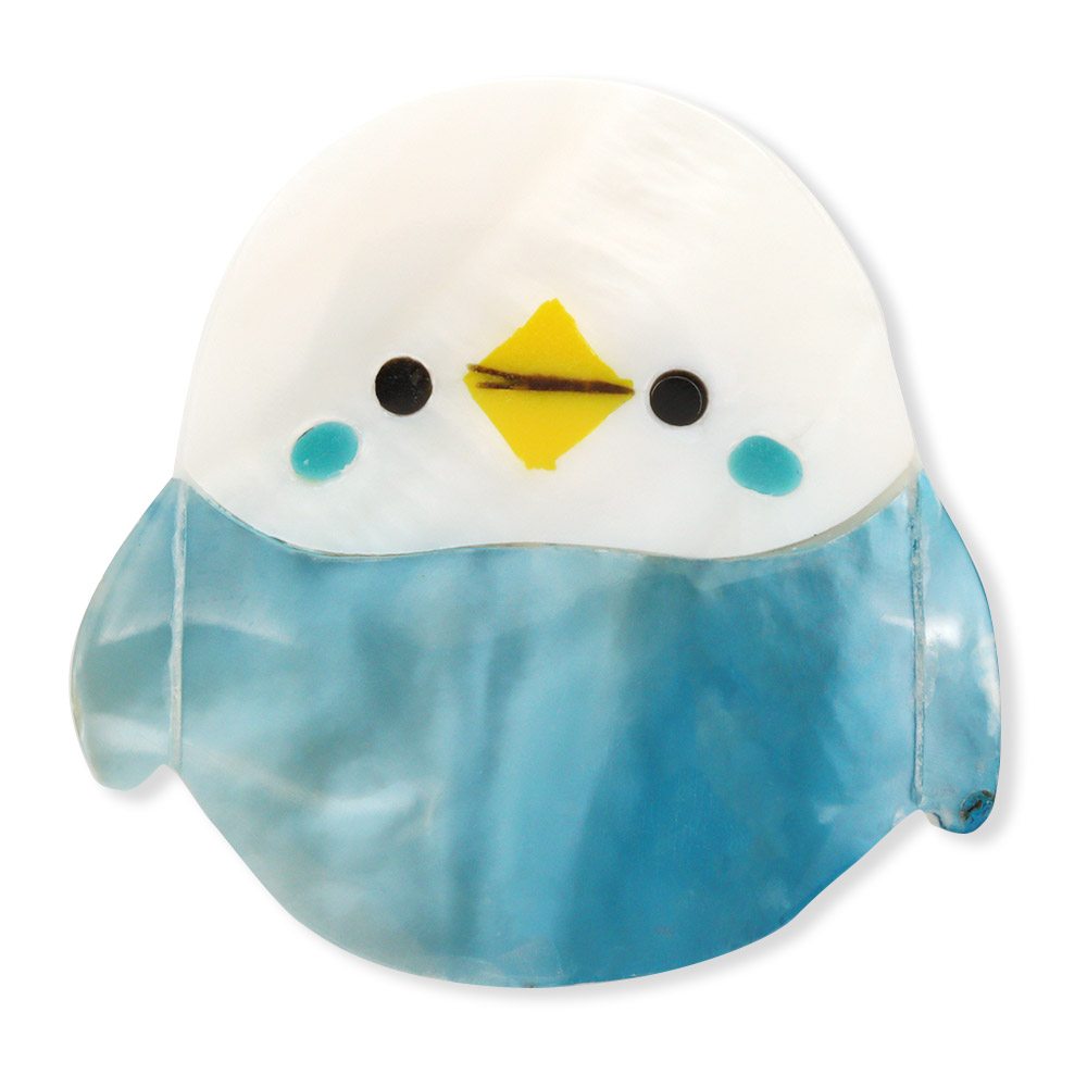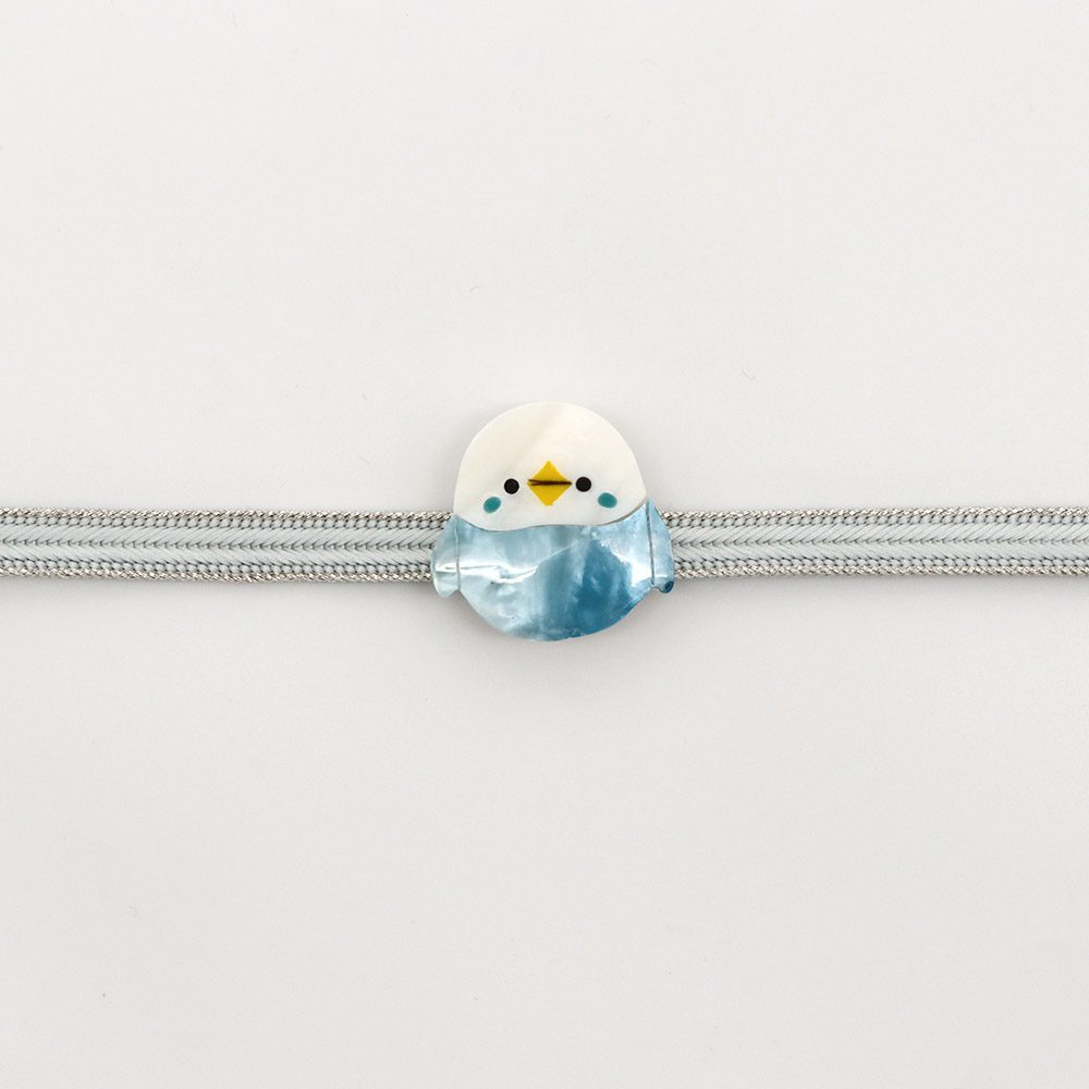 さまざまな色合いに輝く色彩は神秘的でありながら、デフォルメされたインコのフォルムが可愛らしく、帯元にそっとなじむような優しい仕上がりに。