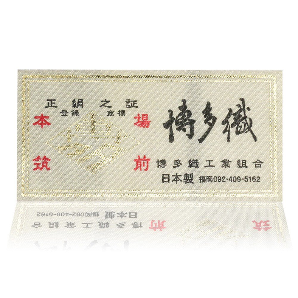 本品は博多織の織元【協和織工場】と【召しませ花】がコラボした、博多小袋帯。博多織工業組合「金証紙」が付いた技術・品質ともに確かな一本です。