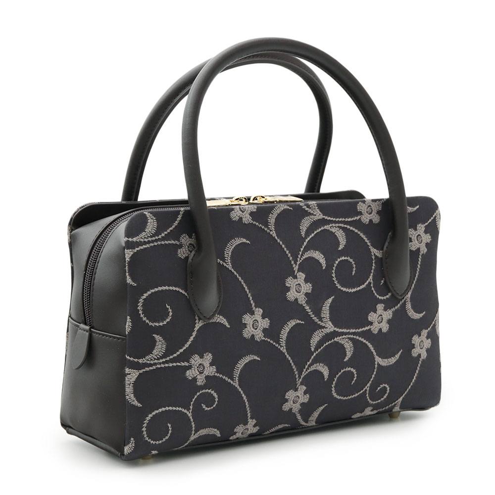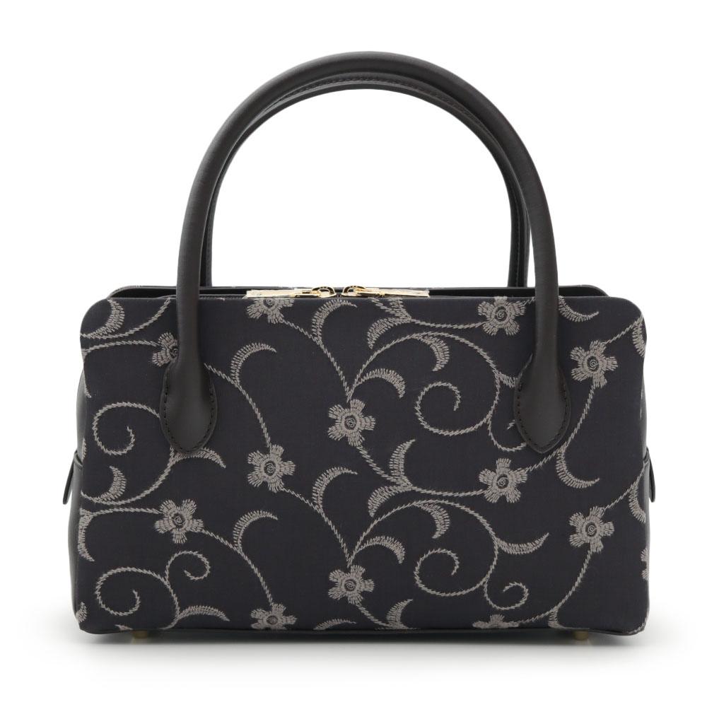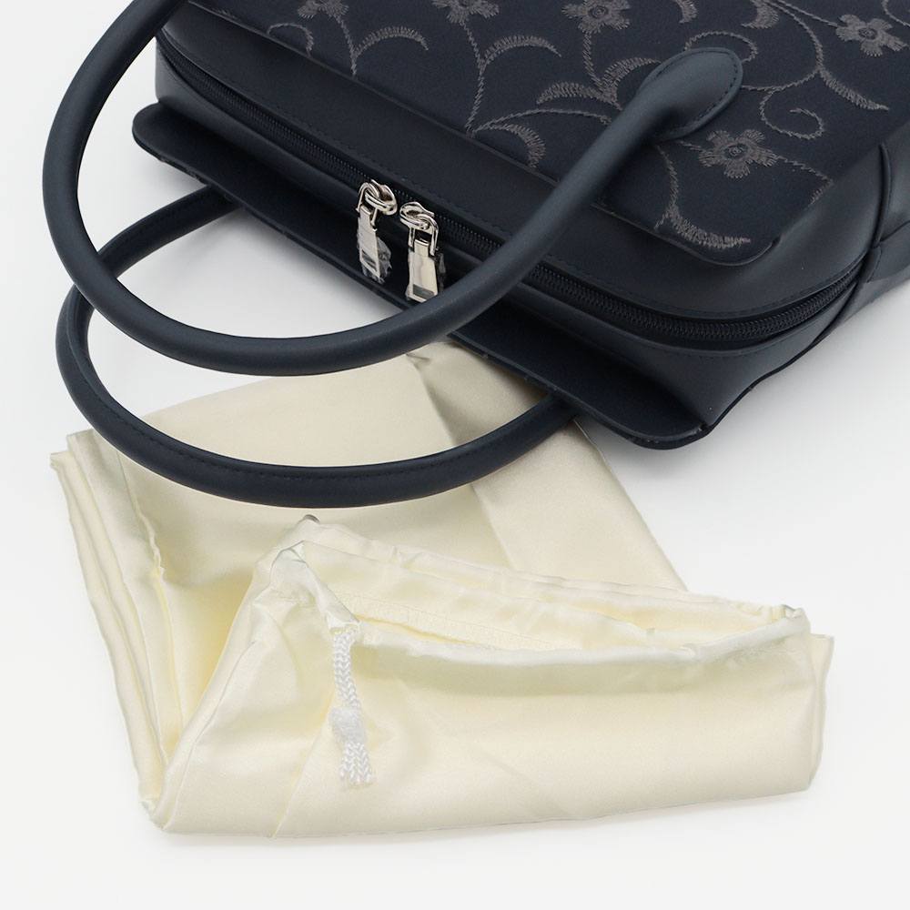 優しい風合いの刺繍面に牛革を合わせ、高級感と柔らかさを兼ね備えたデザイン。定番の花唐草に利休タイプが着物コーデにバッチリ似合い、どんなシーンでもお使いいただける万能バッグになっています。
