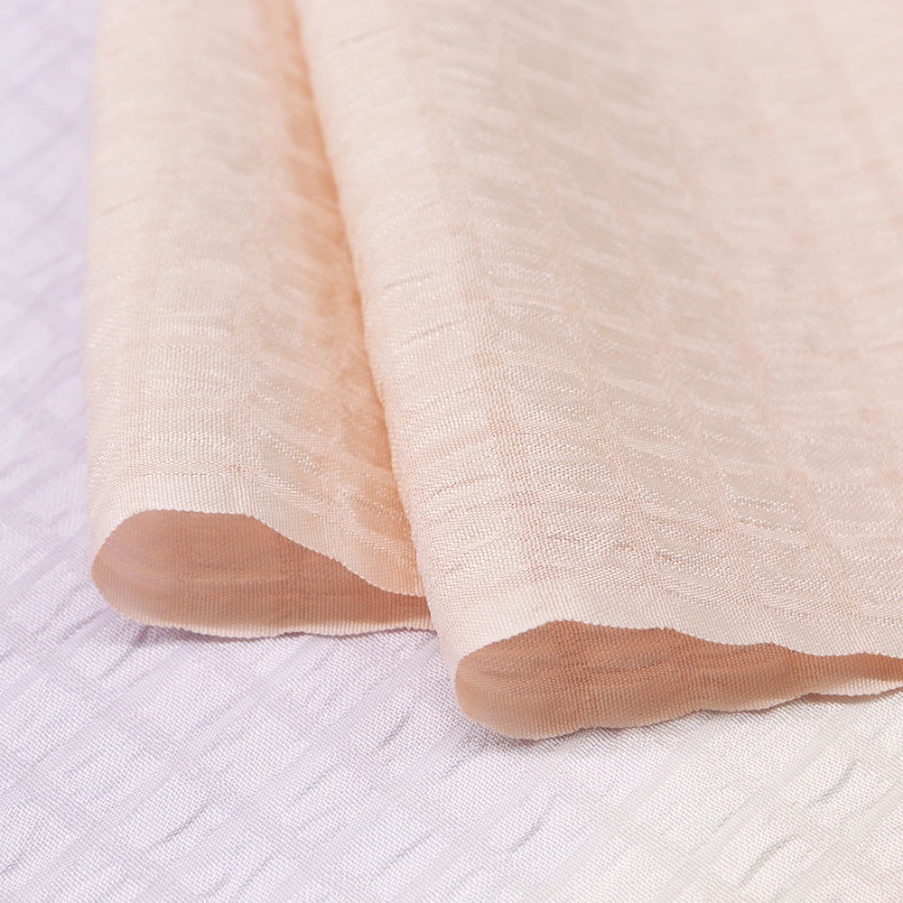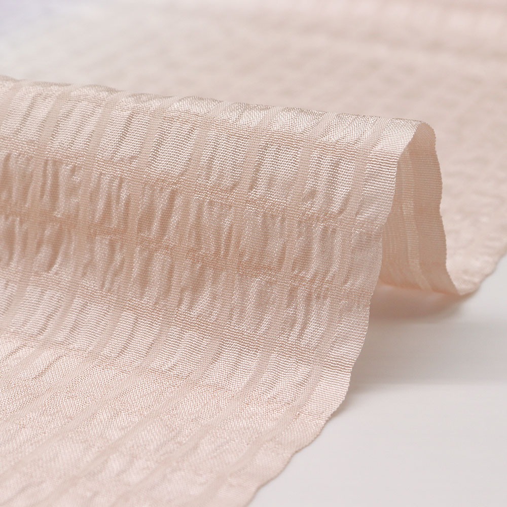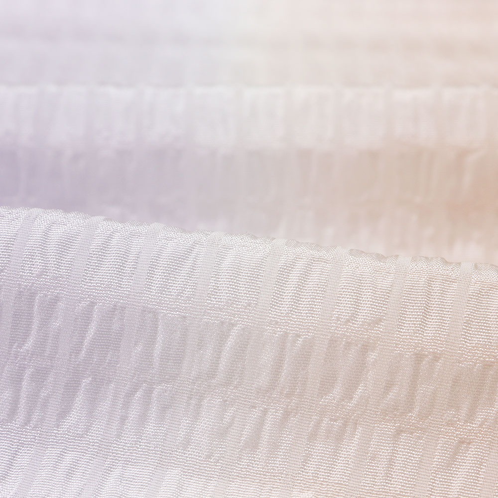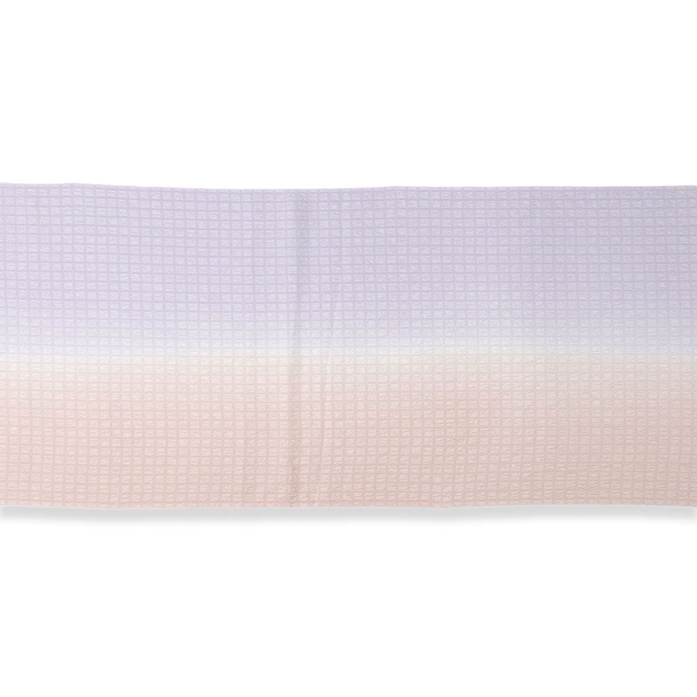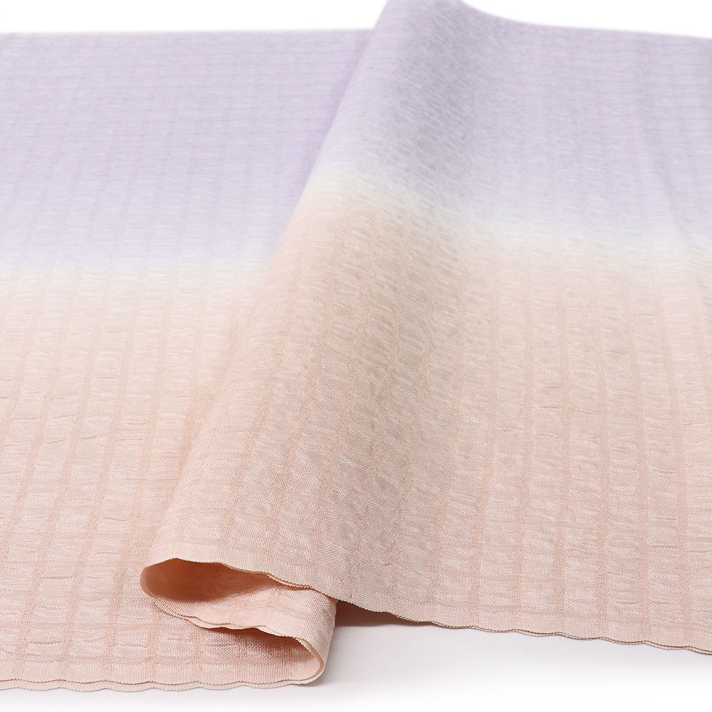 一枚の生地に奥深い表情を生み出してくれるシボを持った生地に、細やかな市松地紋を織り出した一枚。縦ぼかしで配された桃と薄藤の2色は、そのシンプルデザインで着姿の馴染ませ役やアクセントとして幅広く活躍してくれそうです。