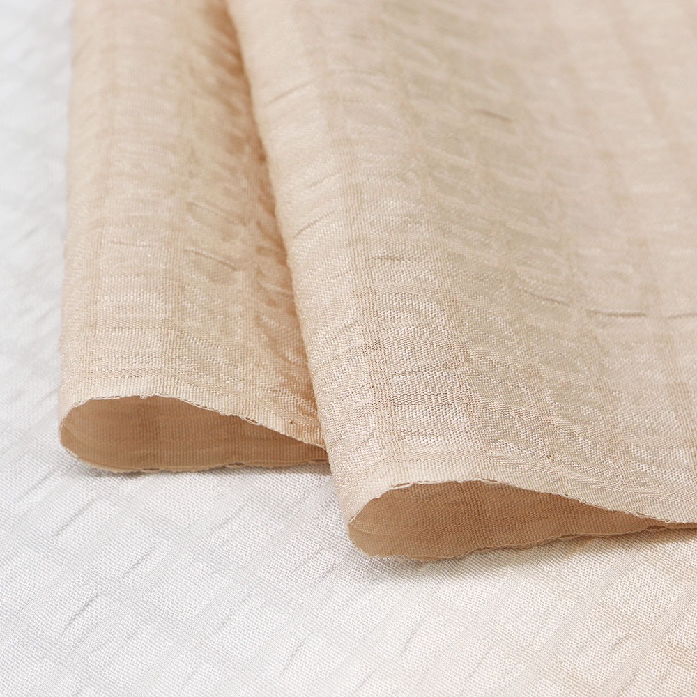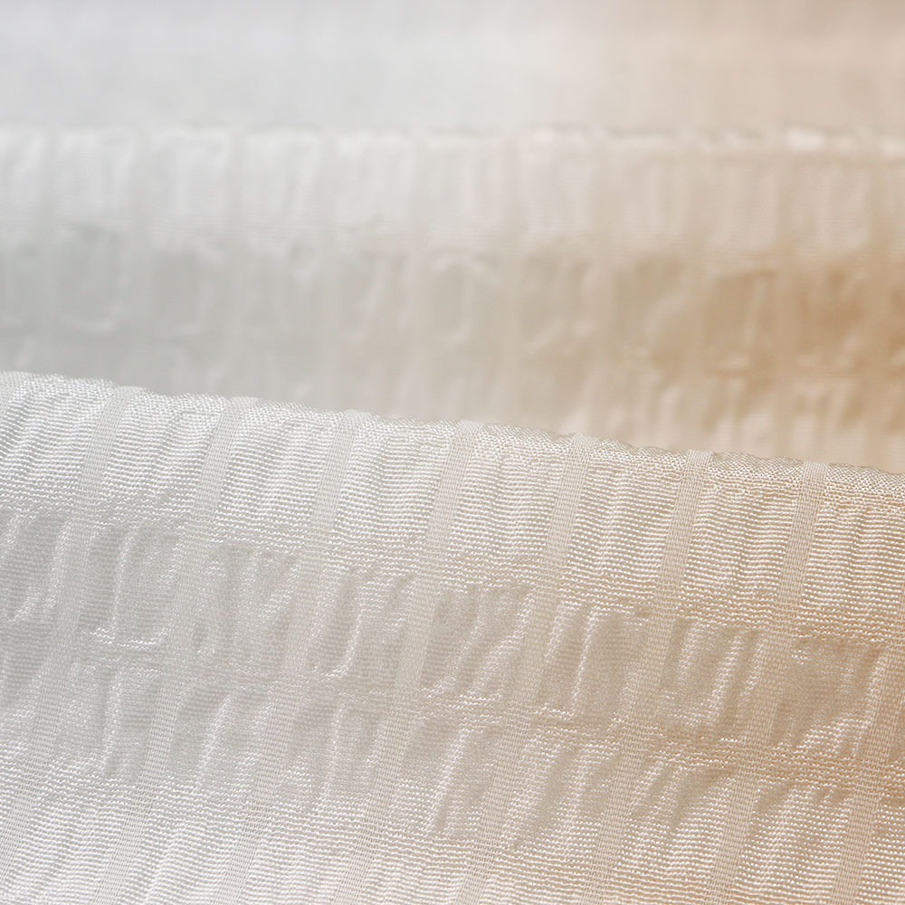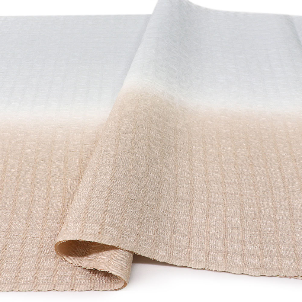 一枚の生地に奥深い表情を生み出してくれるシボを持った生地に、細やかな市松地紋を織り出した一枚。縦ぼかしで配された薄桜と薄水色の2色は、そのシンプルデザインで着姿の馴染ませ役やアクセントとして幅広く活躍してくれそうです。
