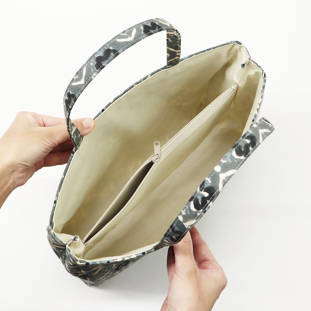 南アジア地域の伝統的染色法であるブロック染めを使用したおでかけバッグです。