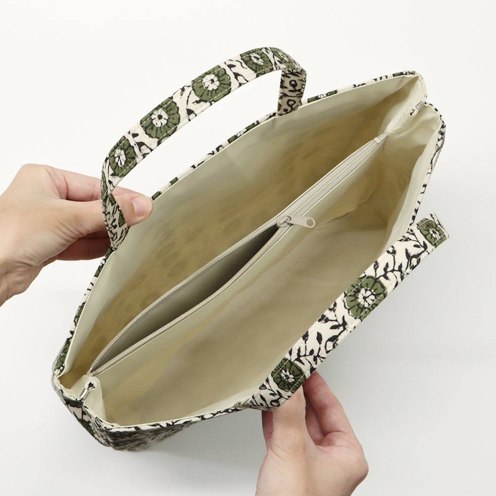 南アジア地域の伝統的染色法であるブロック染めを使用したおでかけバッグです。