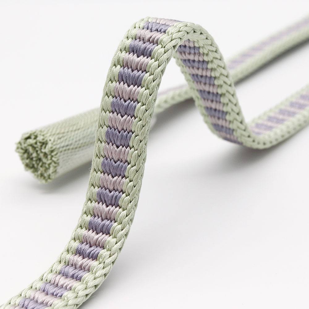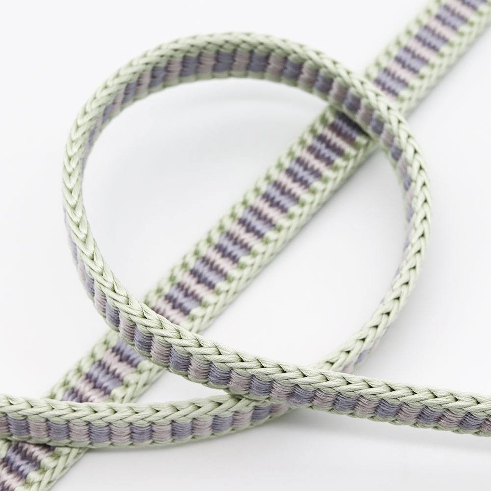 薄緑で組まれた耳に、薄藤と桜色を交互に組んだ色彩豊かなデザイン。お手入れが簡単な撚り房なので、ヘビロテしても房の美しさが長持ちするのが嬉しいですね。