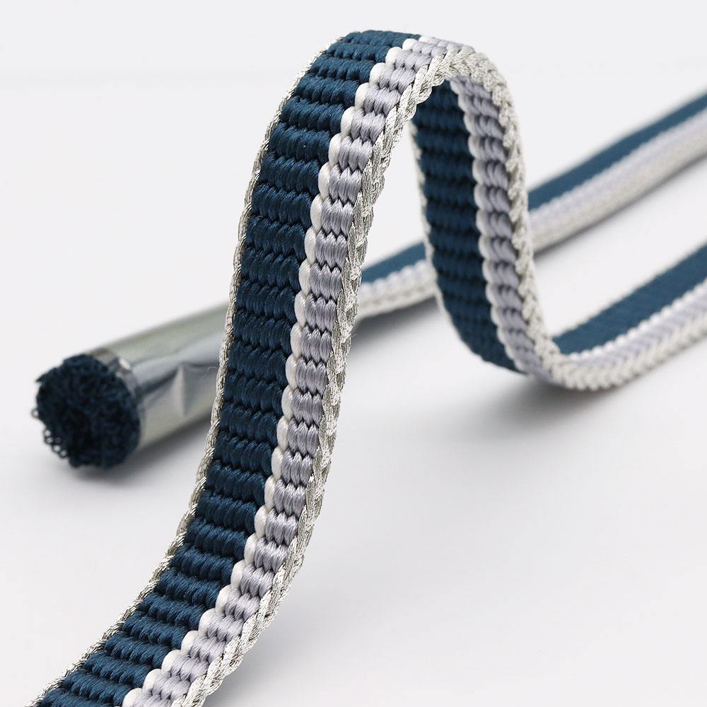 藍色と薄灰青を立別に組んだ色彩豊かなデザイン。銀糸で組まれた耳が着姿のアクセントとなり、その輝きがちょっとした華やかさを与えてくれそうです。銀糸で組まれた耳が着姿のアクセントとなり、その輝きがちょっとした華やかさを与えてくれそうです。お手入れが簡単な撚り房なので、ヘビロテしても房の美しさが長持ちするのも嬉しいですね。