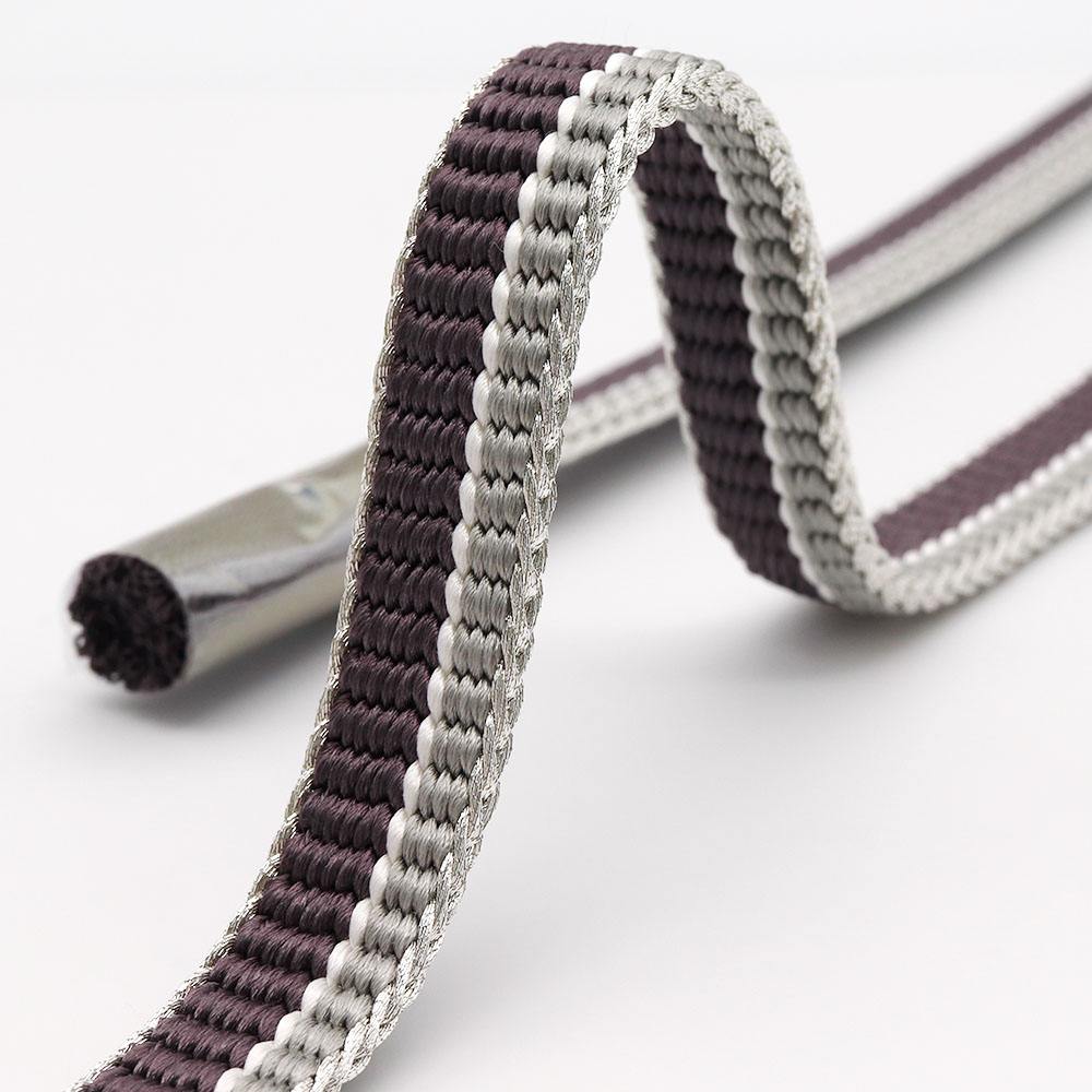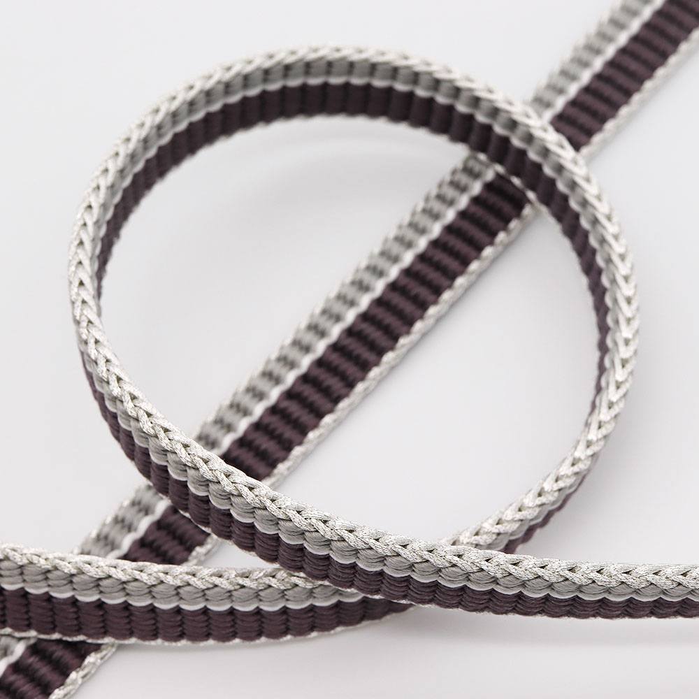 灰紫と薄灰を立別に組んだ色彩豊かなデザイン。銀糸で組まれた耳が着姿のアクセントとなり、その輝きがちょっとした華やかさを与えてくれそうです。お手入れが簡単な撚り房なので、ヘビロテしても房の美しさが長持ちするのも嬉しいですね。