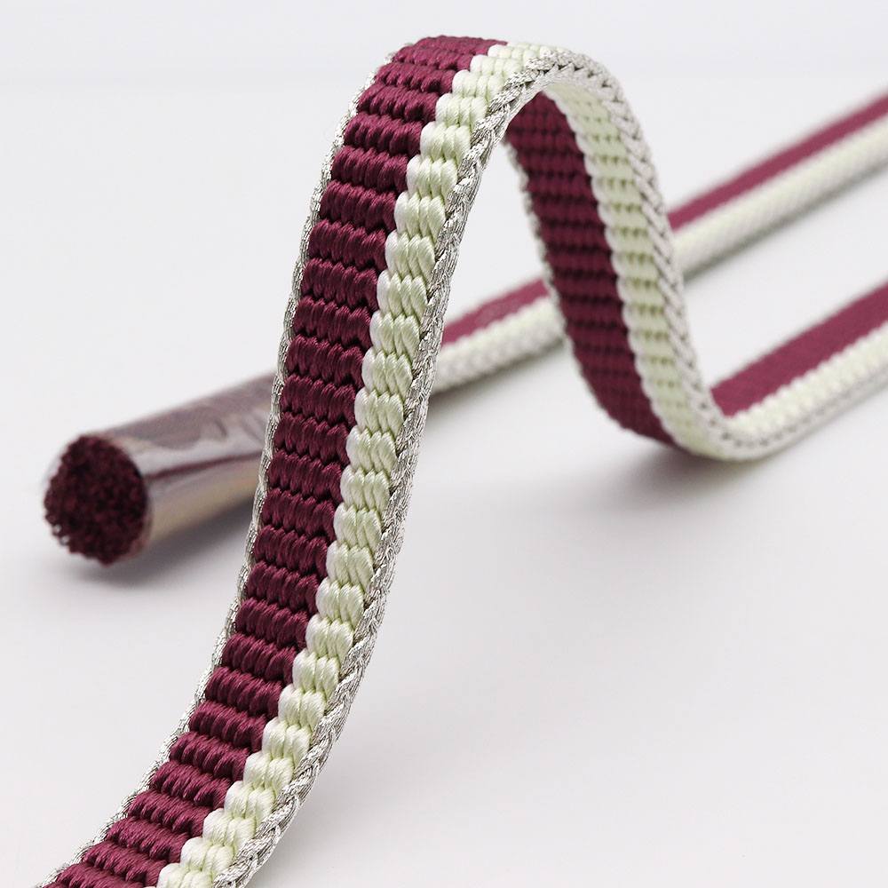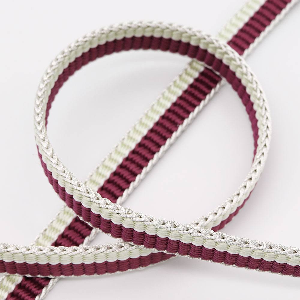 葡萄色と白緑色を立別に組んだ色彩豊かなデザイン。銀糸で組まれた耳が着姿のアクセントとなり、その輝きがちょっとした華やかさを与えてくれそうです。お手入れが簡単な撚り房なので、ヘビロテしても房の美しさが長持ちするのも嬉しいですね。