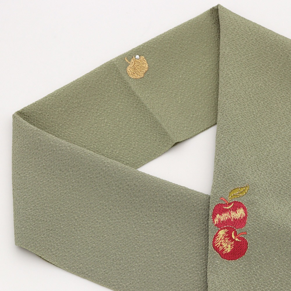 ワンポイント刺繍半衿(幸運のりんご)【銀座いち利オリジナル】