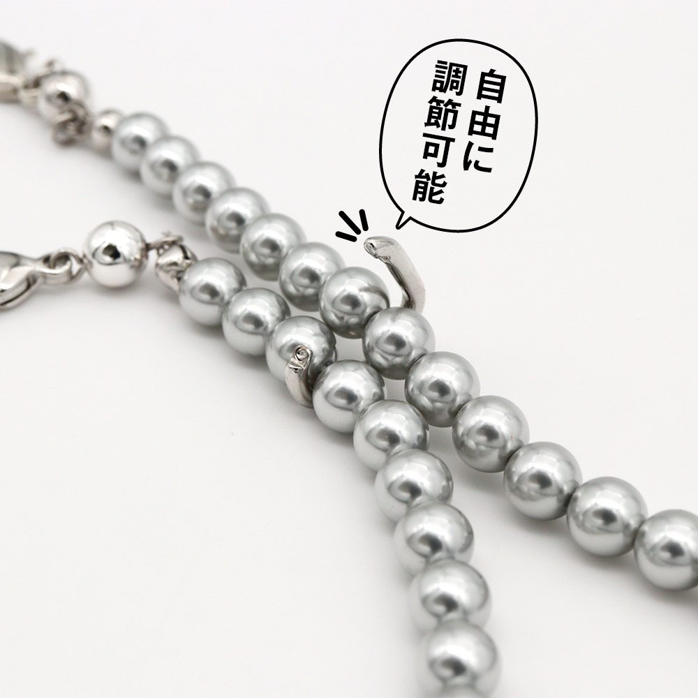 さらに、2本のパール紐を束ねている金具は取り外しが可能で、ループタイのように長さを自由に調節していただけます◎