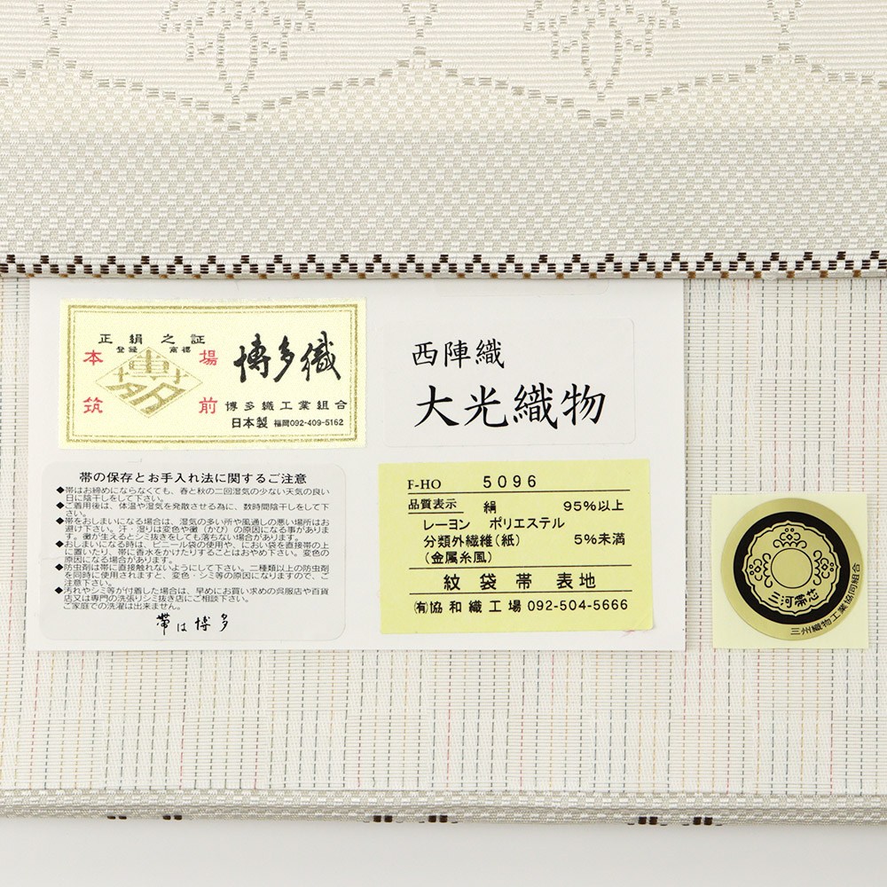 • 帯の平仕立ては裏地に綿モスリンを使用します。(夏物の場合も裏地は綿モスリンとなります)