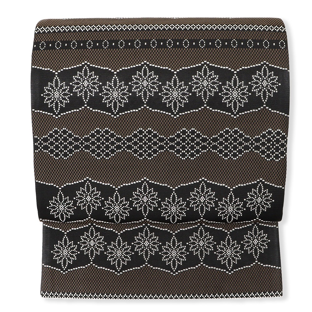 オーソドックスな博多献上とはまた違った魅力をはなつ、花横段模様がモダンなデザイン。