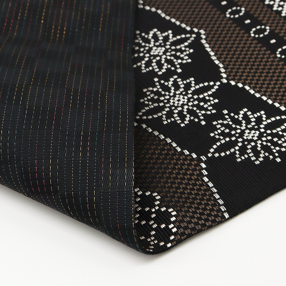 帯裏には、西陣の織元【大光織物】による、市松地紋に縞柄の織地を合わせた贅沢な一本です。