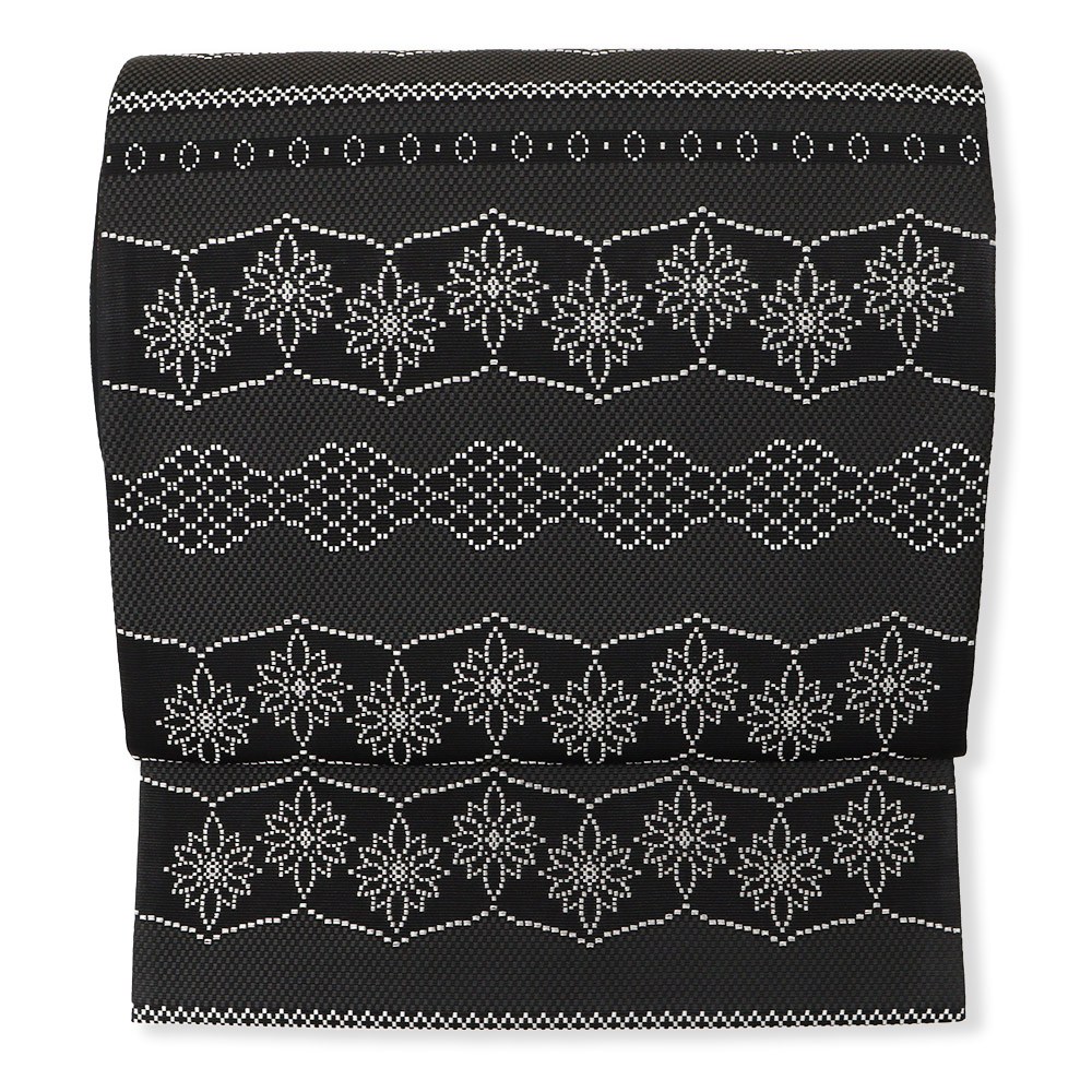 オーソドックスな博多献上とはまた違った魅力をはなつ、花横段模様がモダンなデザイン。