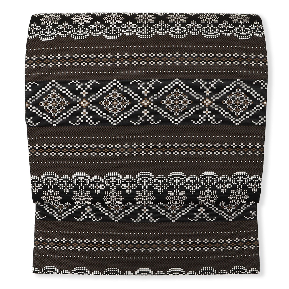 オーソドックスな博多献上とはまた違った魅力をはなつ、花菱横段模様がモダンなデザイン。