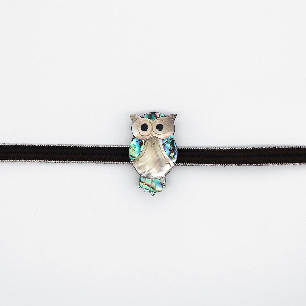 フクロウを象ったひと品は、貝ならではの奥深い光沢と彩りが幾重もの表情を見せる、素材本来の美しさを感じていただけます。