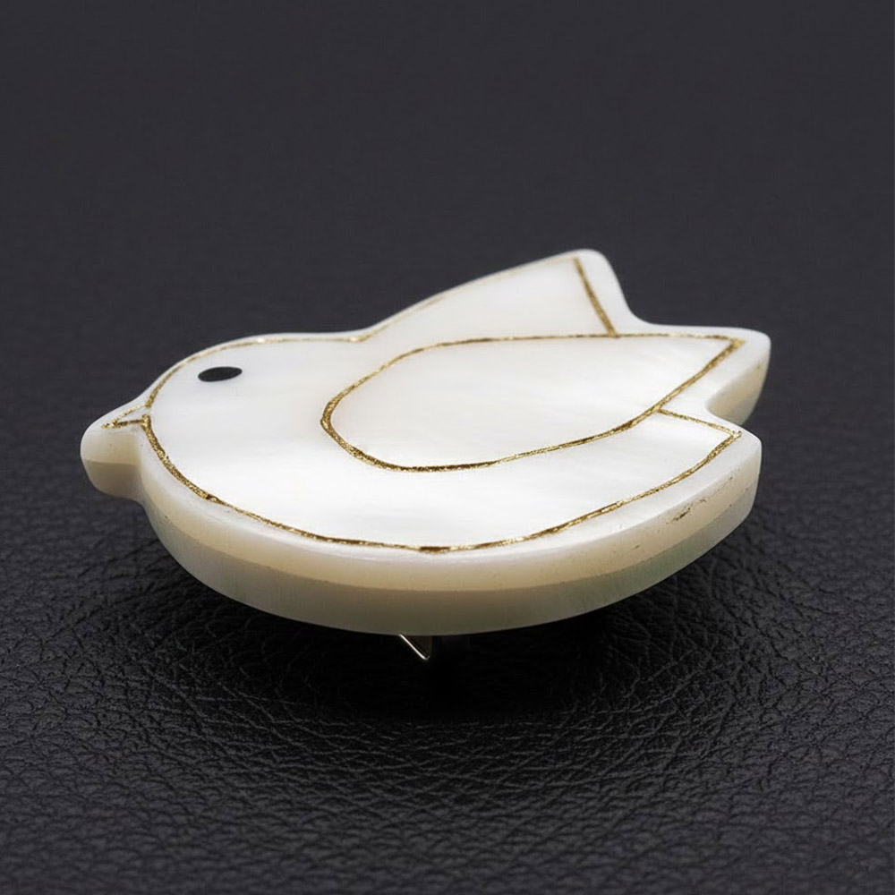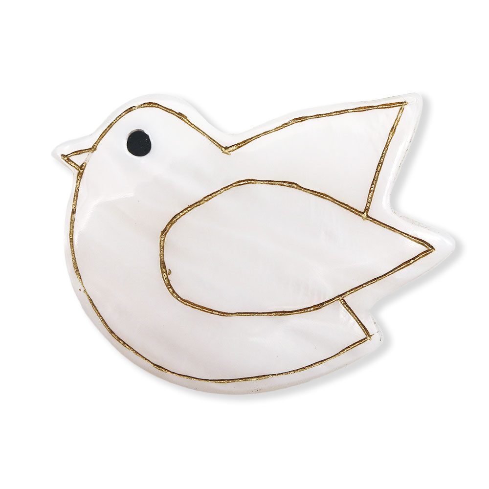 ハトを象ったひと品は、貝ならではの奥深い光沢と彩りが幾重もの表情を見せる、素材本来の美しさを感じていただけます。
