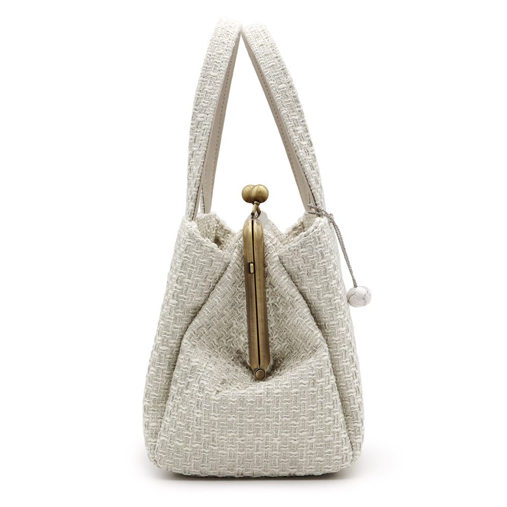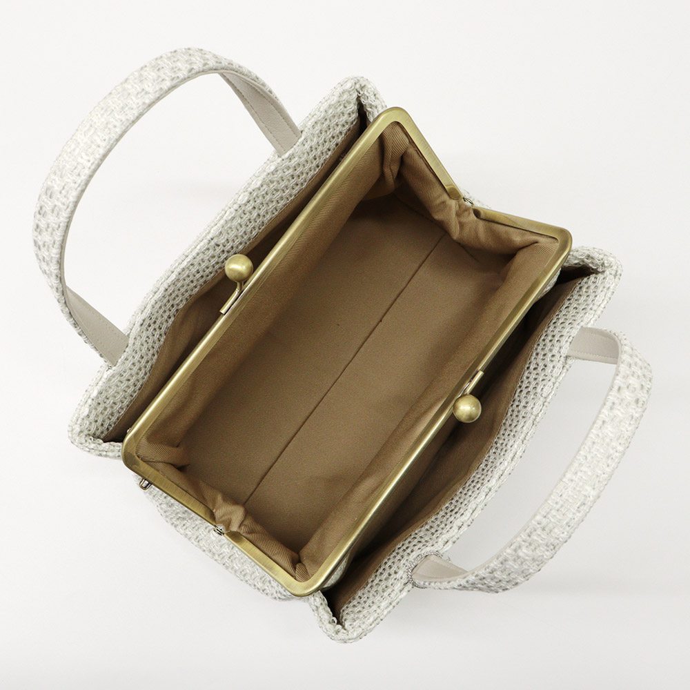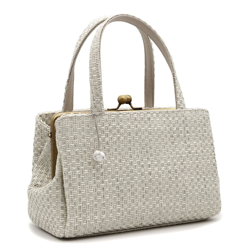 経糸と緯糸が網代のように交差するバッグ地は、柔らかい色調と相まって、ほっこり優しい風合いです。