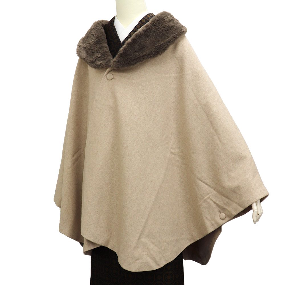 ファー付きケープポンチョ(ヘリンボーン)『JAPAN MODE』