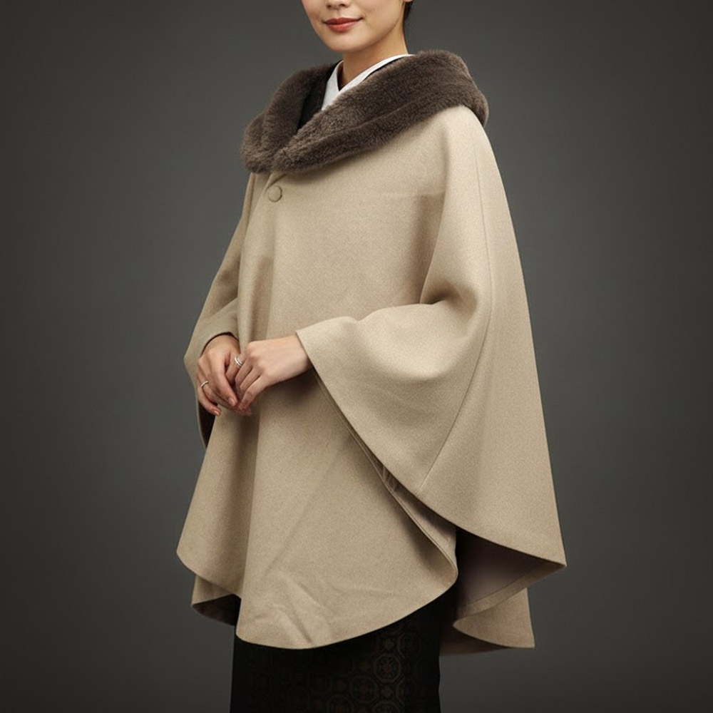 ウールとファーが冬のお出かけを温かく包んでくれる『JAPAN MODE』のケープポンチョ。