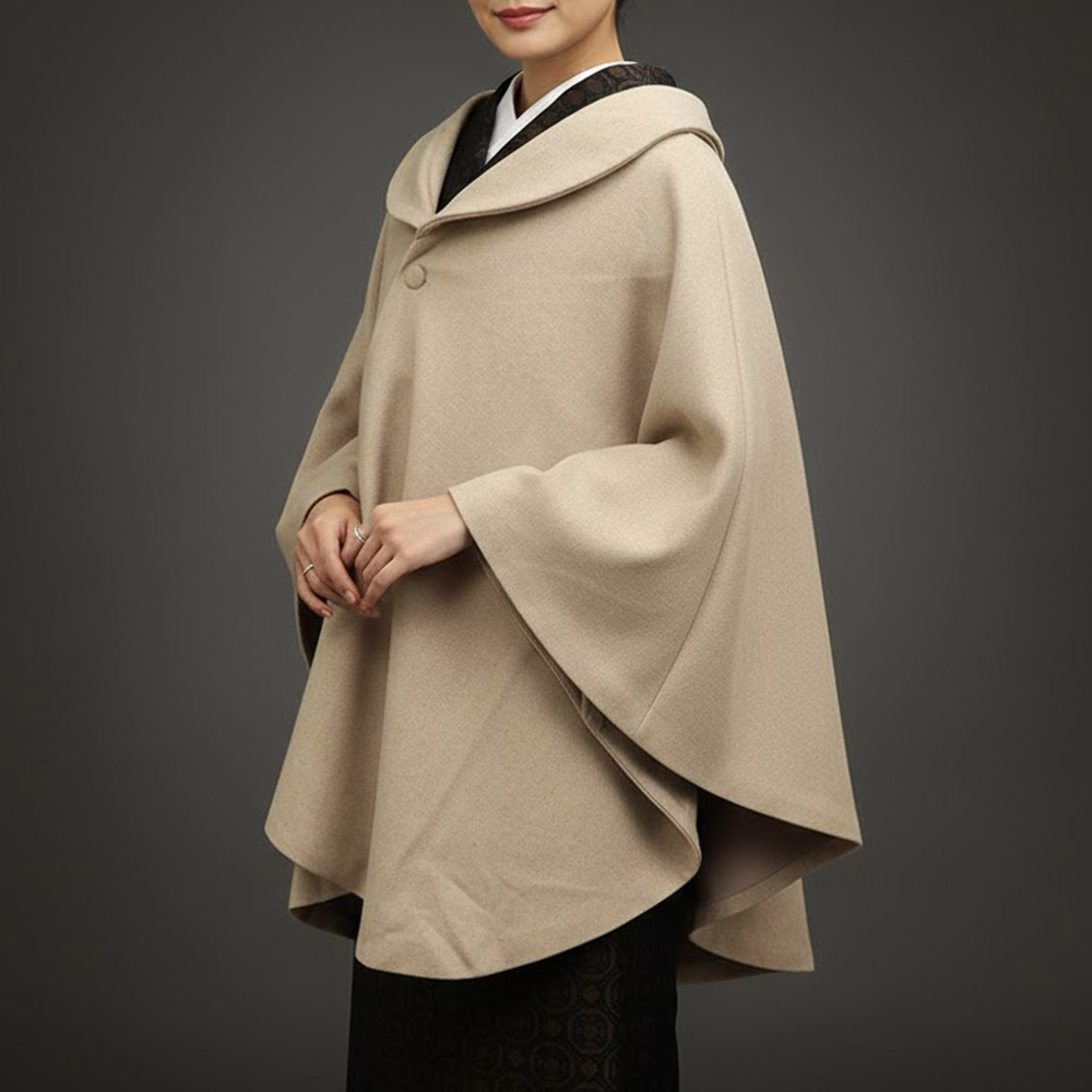 サッと羽織れて、しっかりオシャレなケープポンチョ。冬のおでかけのお供として、一枚お手元にいかがでしょうか。