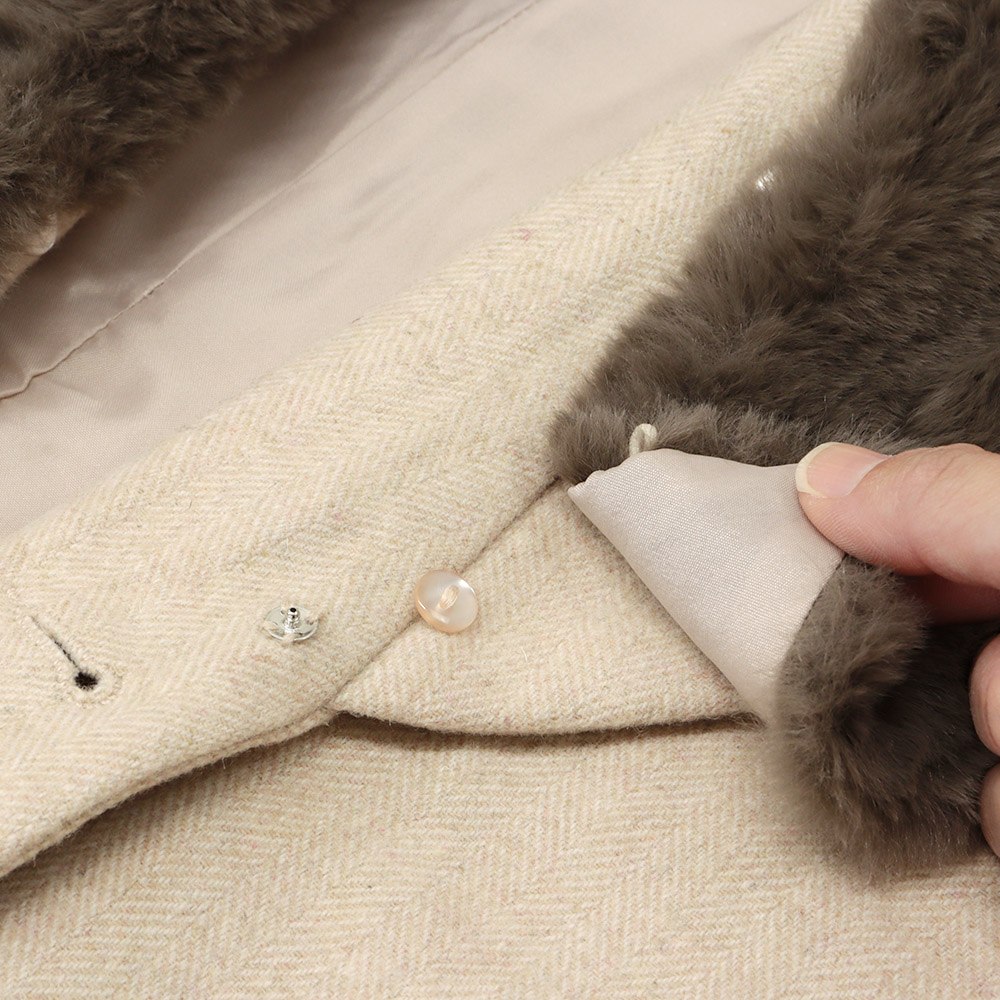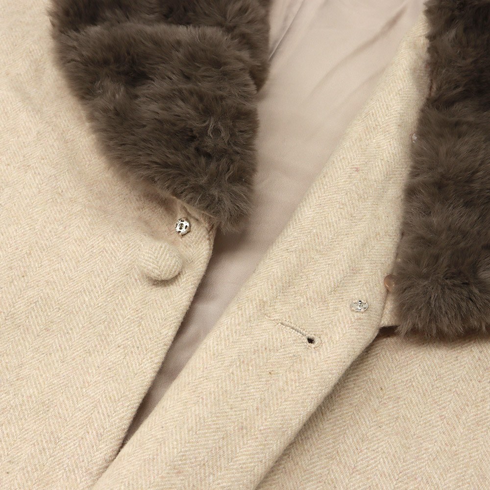厚みのあるベージュのウール混地に、たっぷりとしたファーがクラシカルな仕上がり。