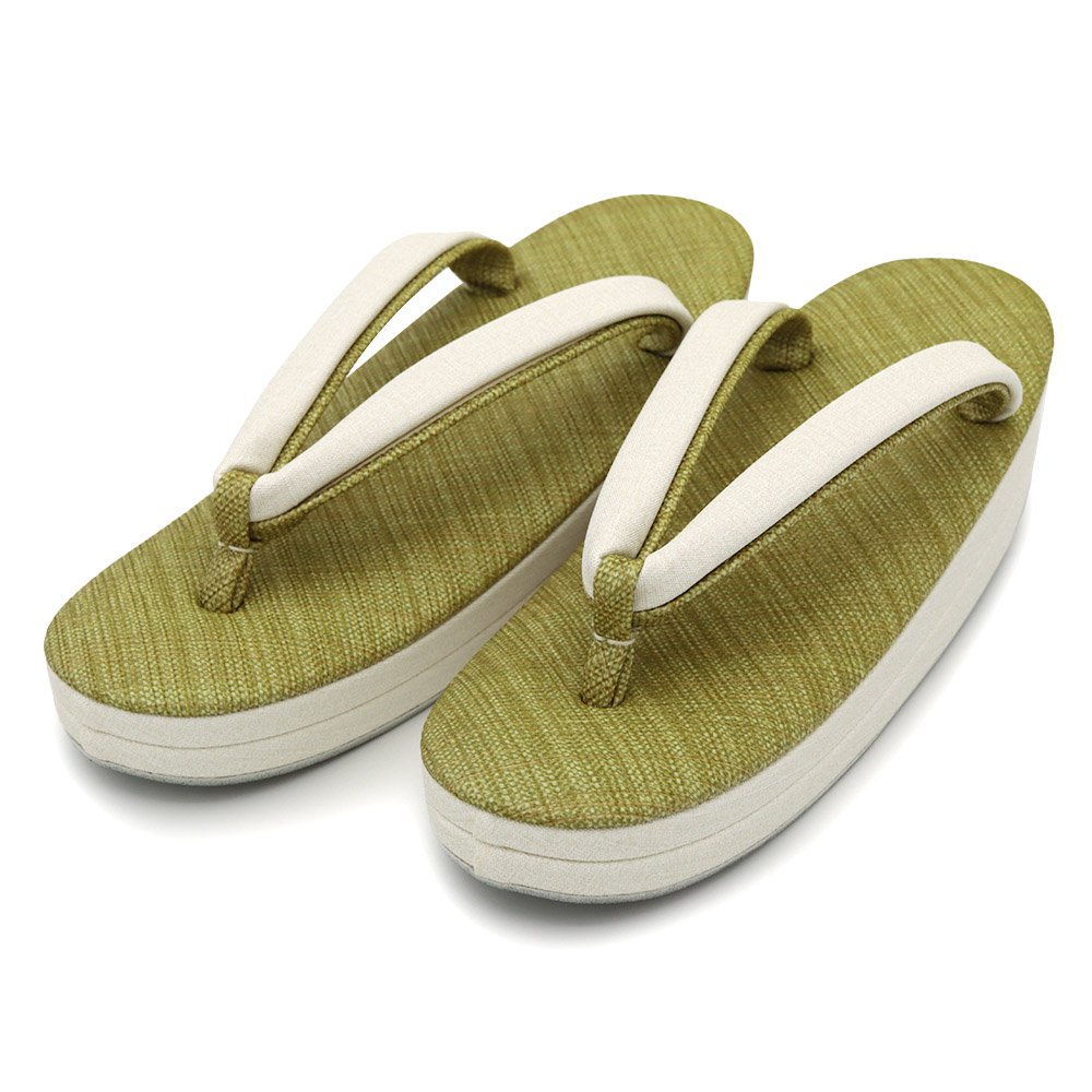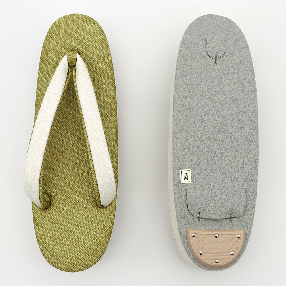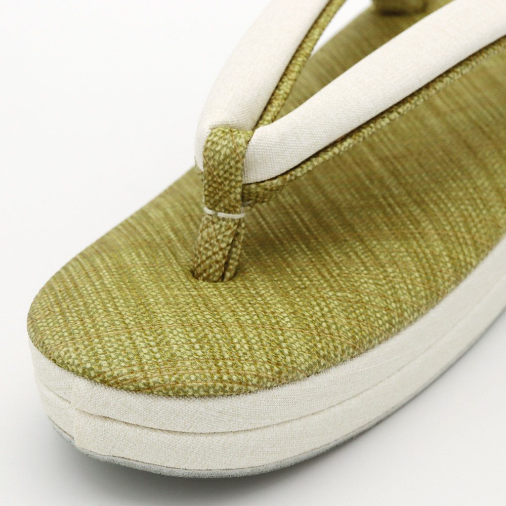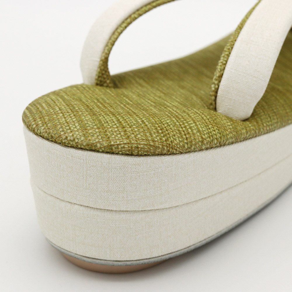 明るさと大人っぽさが絶妙なピスタチオカラーの草履天に、柔らかなミルクカラーの二枚芯と鼻緒を合わせた、大人カワイイ仕上がりになりました。まるでスイーツのような配色が乙女心をくすぐります。