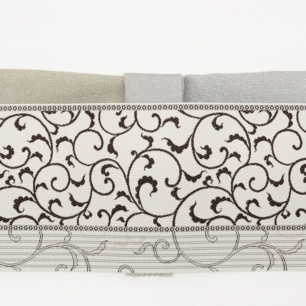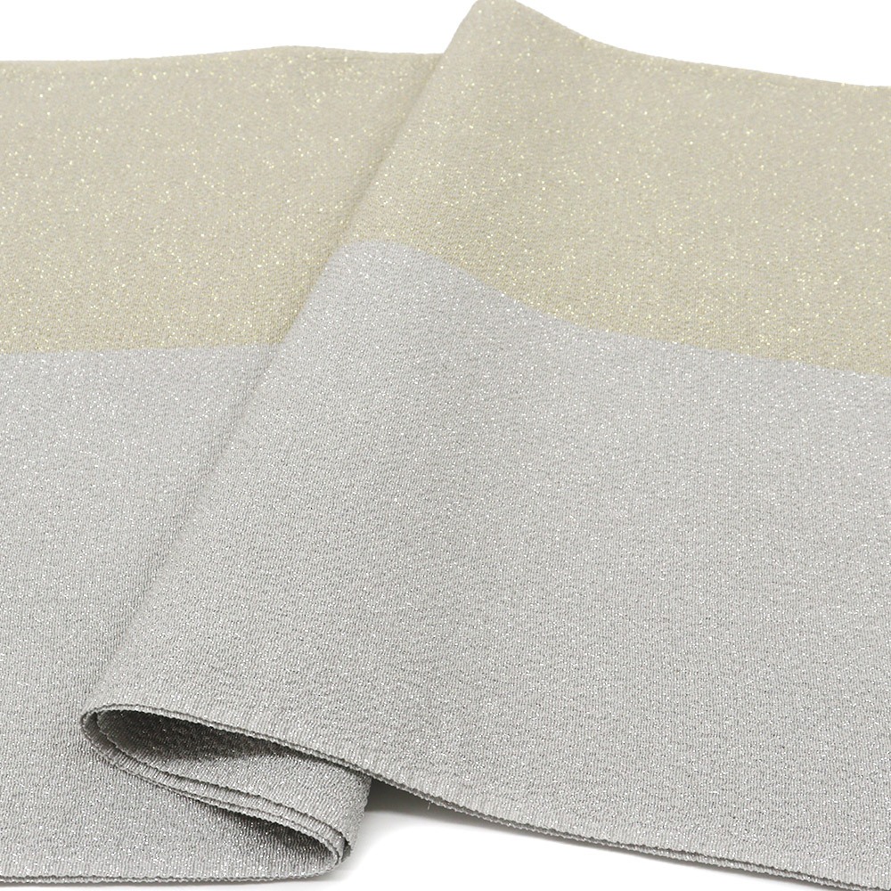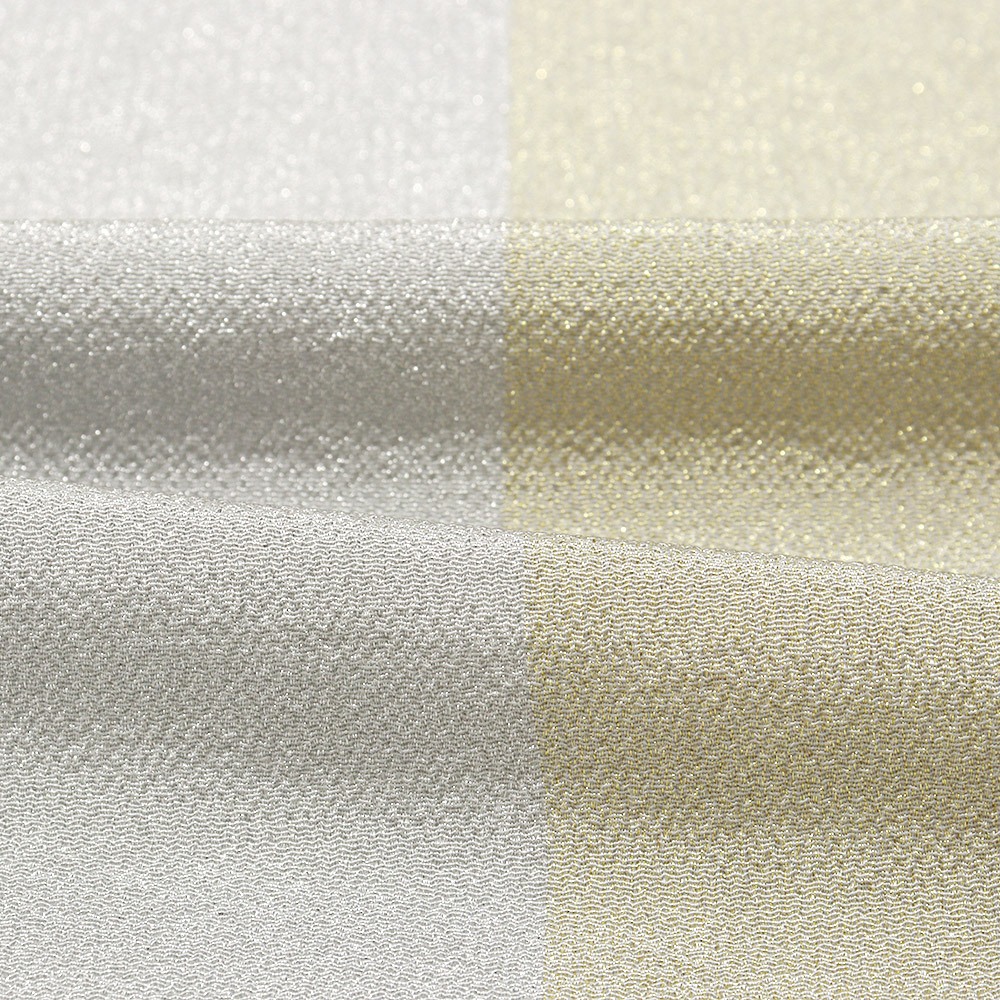 銀糸混じりはシルバーに、金糸混じりはゴールドにに見える、錯視を利用した不思議な仕上がりは、ぜひお手元で見比べてみていただきたいひと品です。